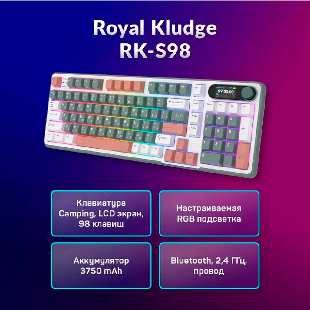 Клавиатура Royal Kludge RK-S98 Blackberry (USB/2.4 GHz/Bluetoоth, RGB, Hot Swap, Chartreuse switch)