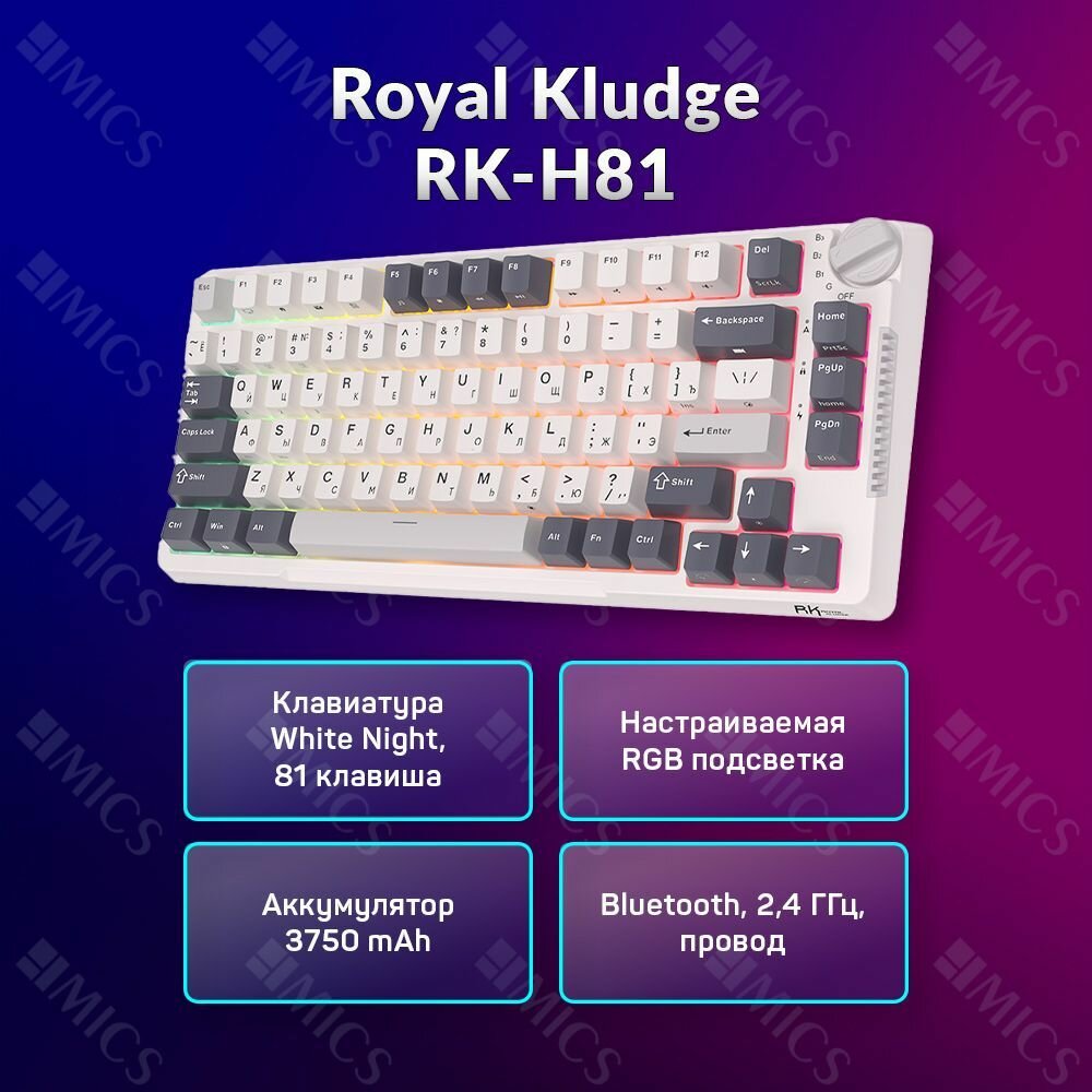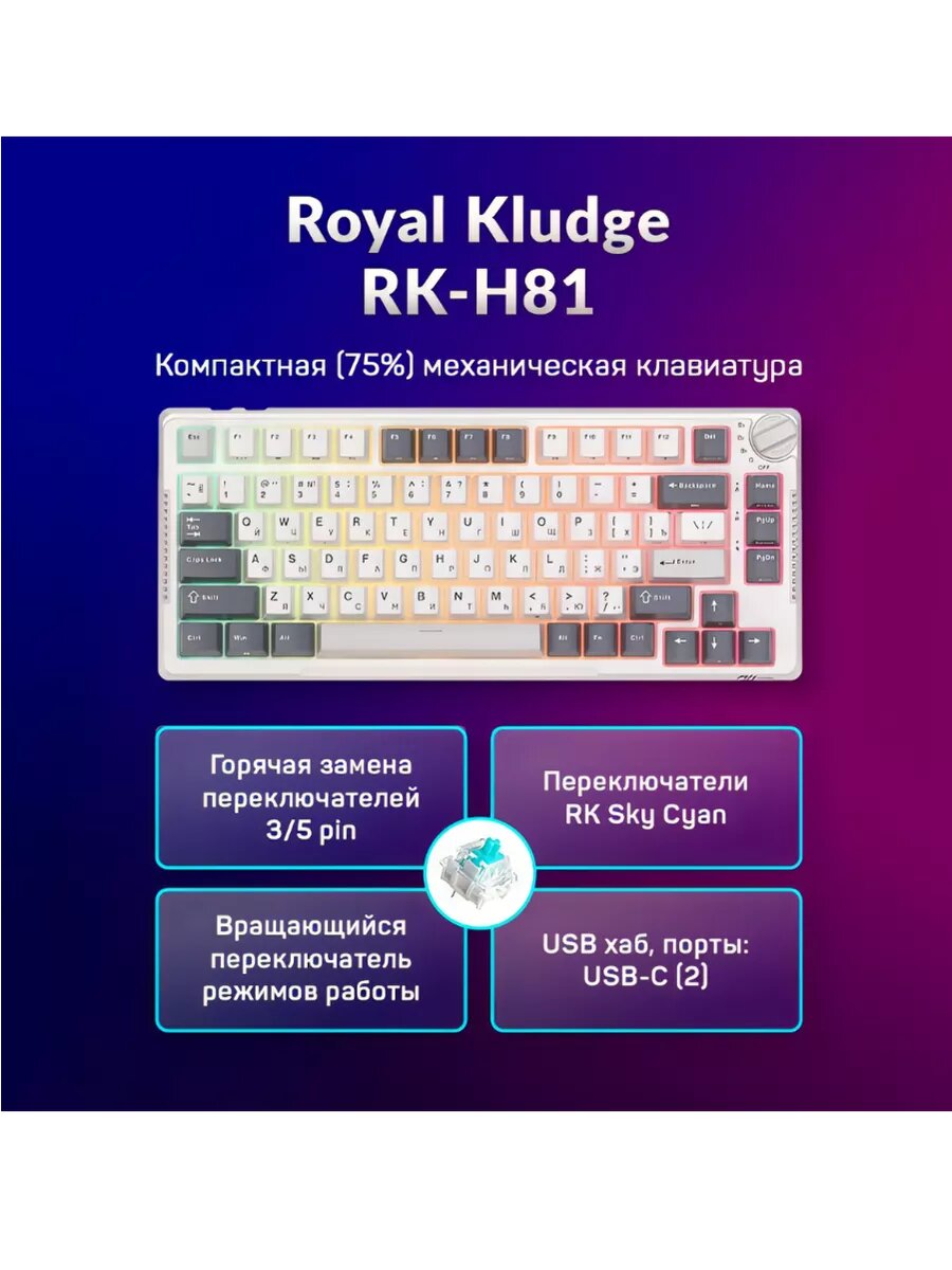 Компактная (75%) механическая клавиатура Royal Kludge RK-H81 - 3 типа подключения, 81 клавиша, Gasket Mount, White Night переключатели RK Sky Cyan