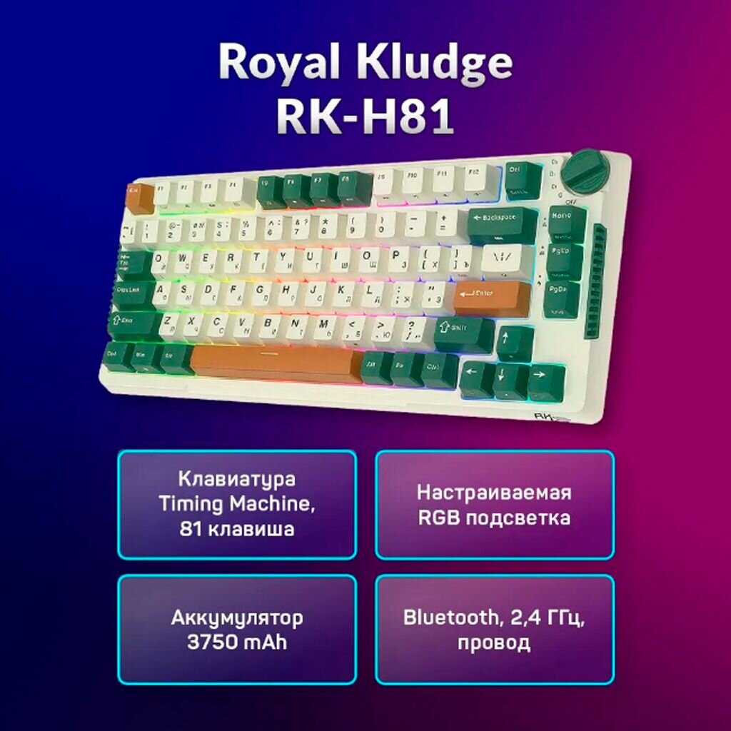 Компактная (75%) механическая клавиатура Royal Kludge RK-H81 - 3 типа подключения, 81 клавиша, Gasket Mount, White Night переключатели RK Sky Cyan
