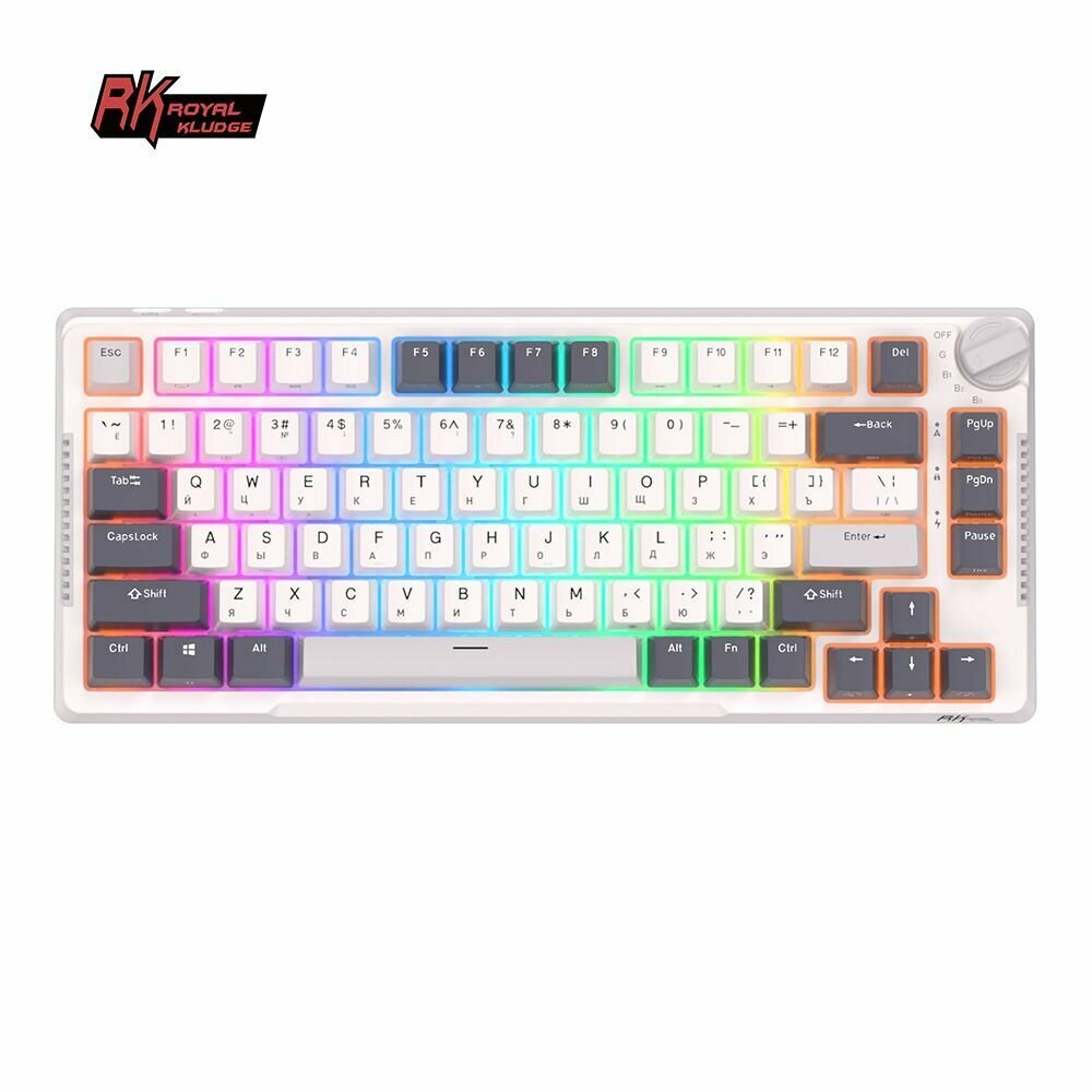 Компактная (75%) механическая клавиатура Royal Kludge RK-H81 - 3 типа подключения, 81 клавиша, Gasket Mount, White Night переключатели RK Sky Cyan