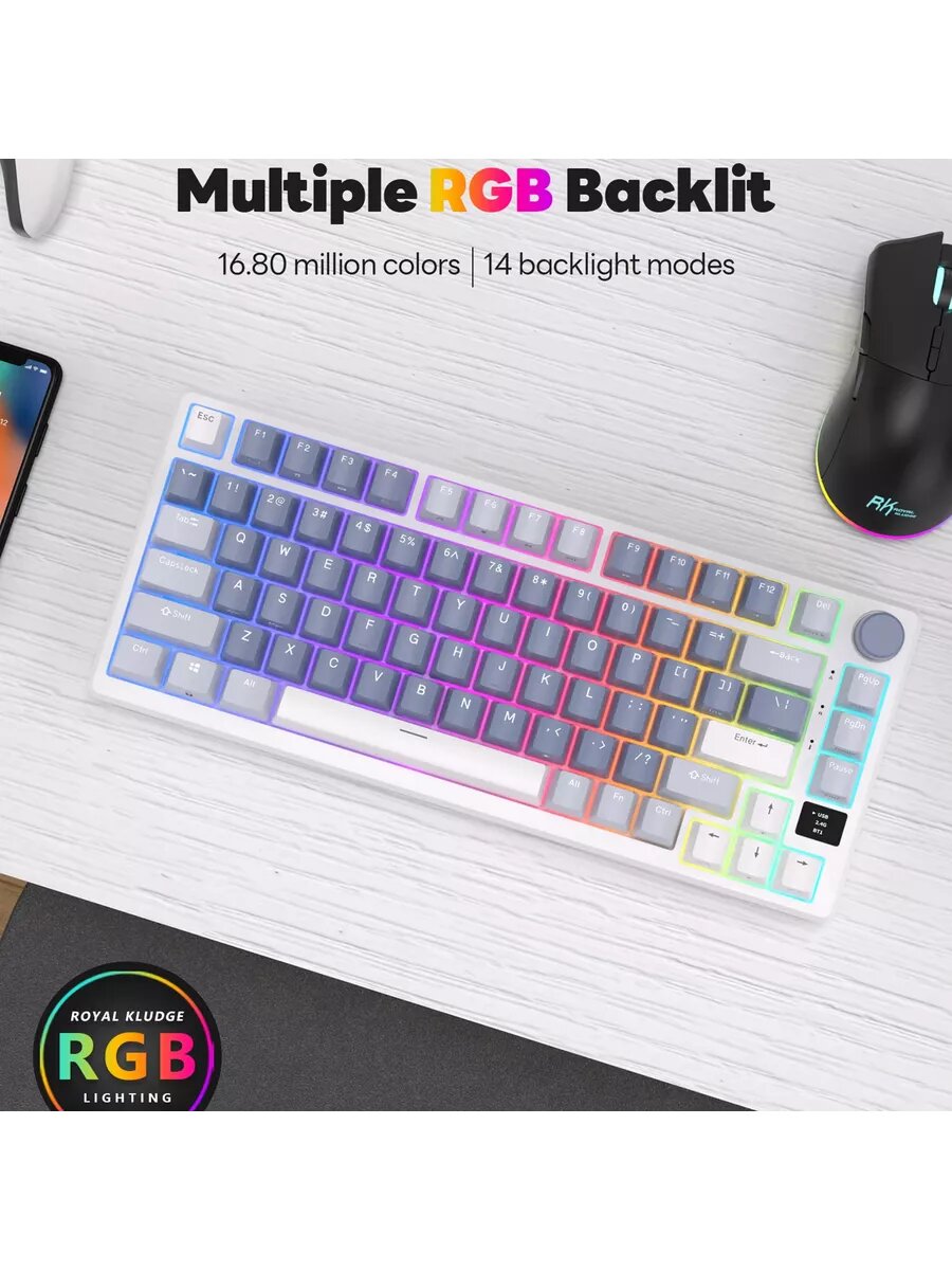 Компактная (75%) механическая клавиатура Royal Kludge RK-M75 - 3 типа подключения, 81 клавиша, Gasket Mount, Phantom, переключатели RK Silver