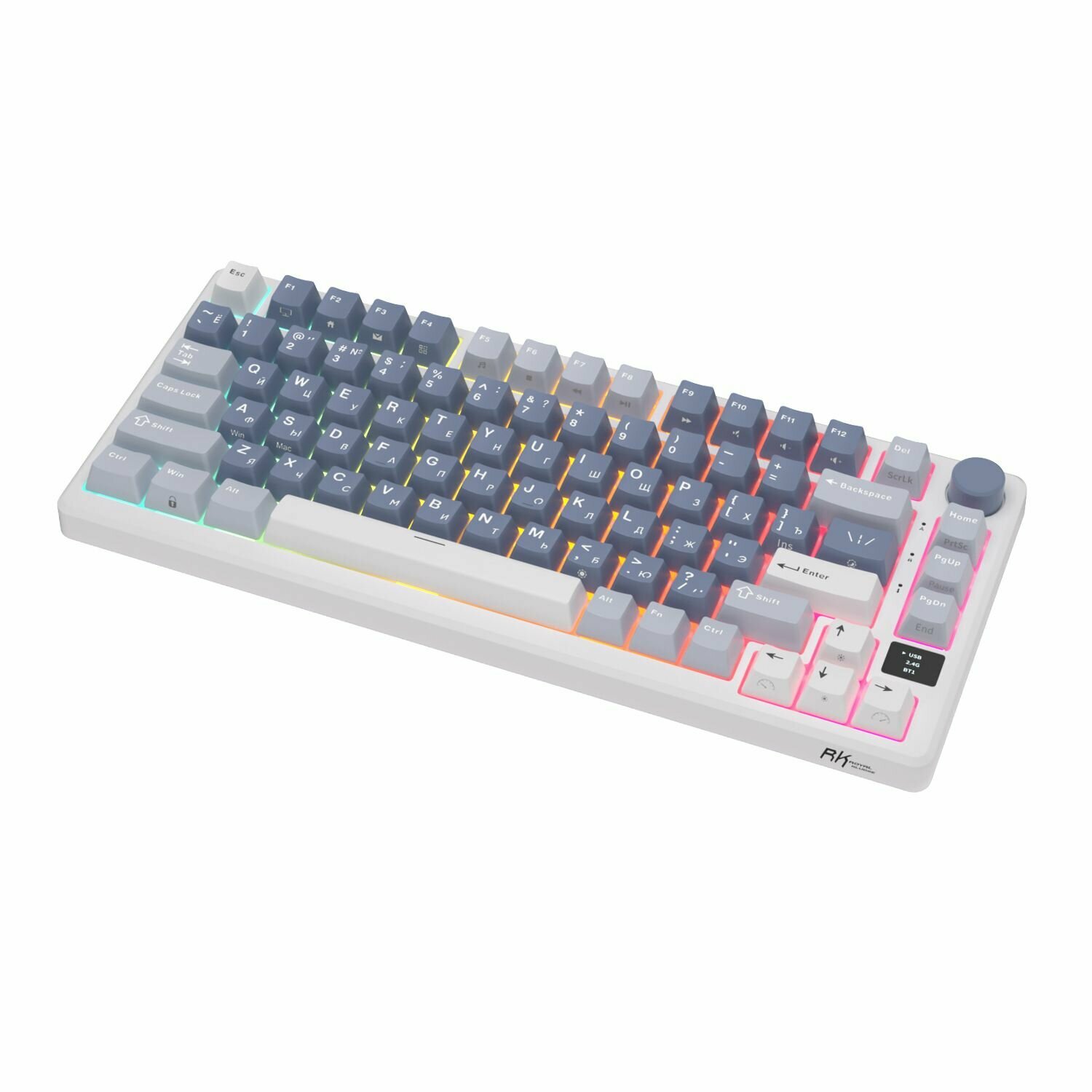 Купить Беспроводная механическая клавиатура Royal Kludge RK-M75 цвет белый, RGB, hot swap, кейкапы без подсветки символов, линейные свитчи (RK Silver)