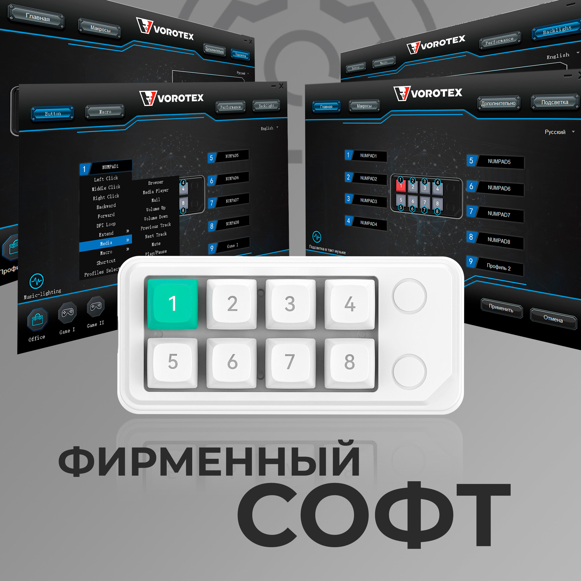 Механическая макро клавиатура VOROTEX K08 Purple Switch