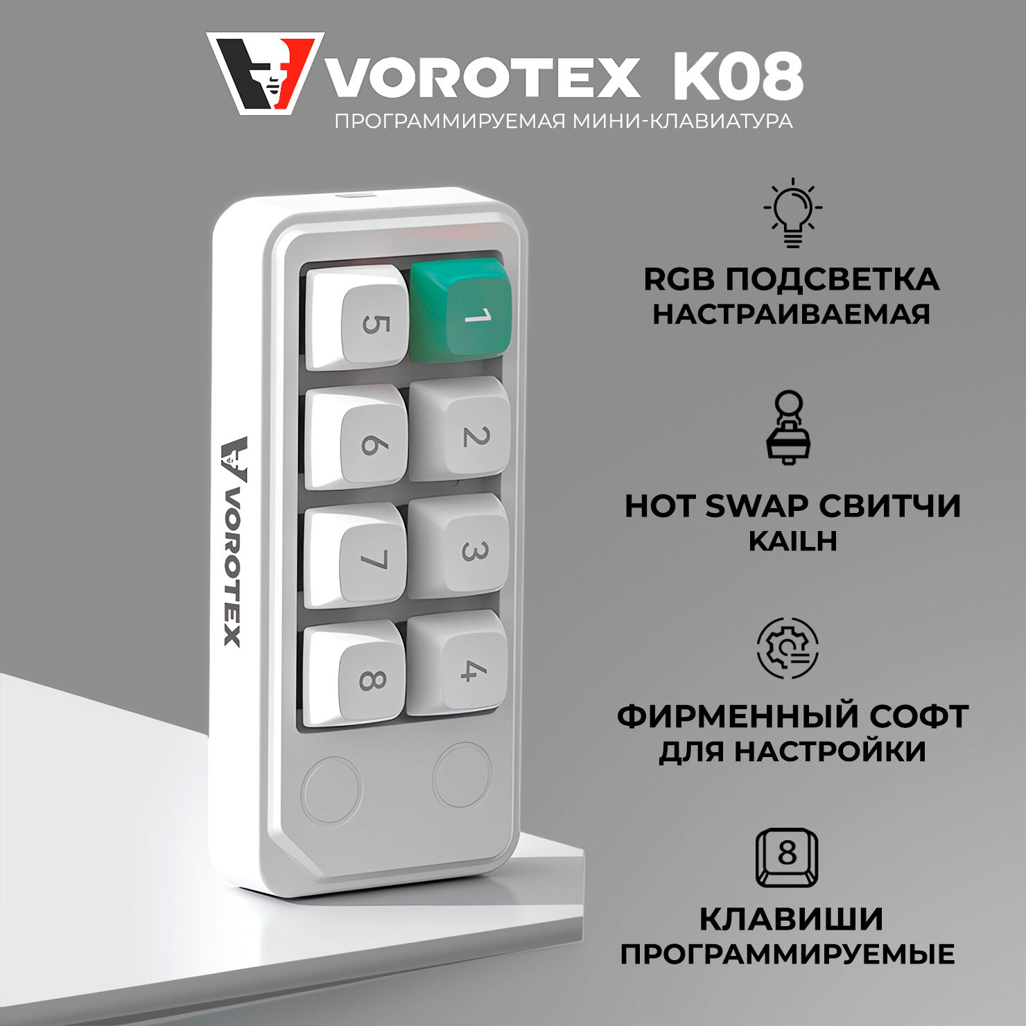 Купить Программируемая механическая мини клавиатура VOROTEX K08 Purple Switch