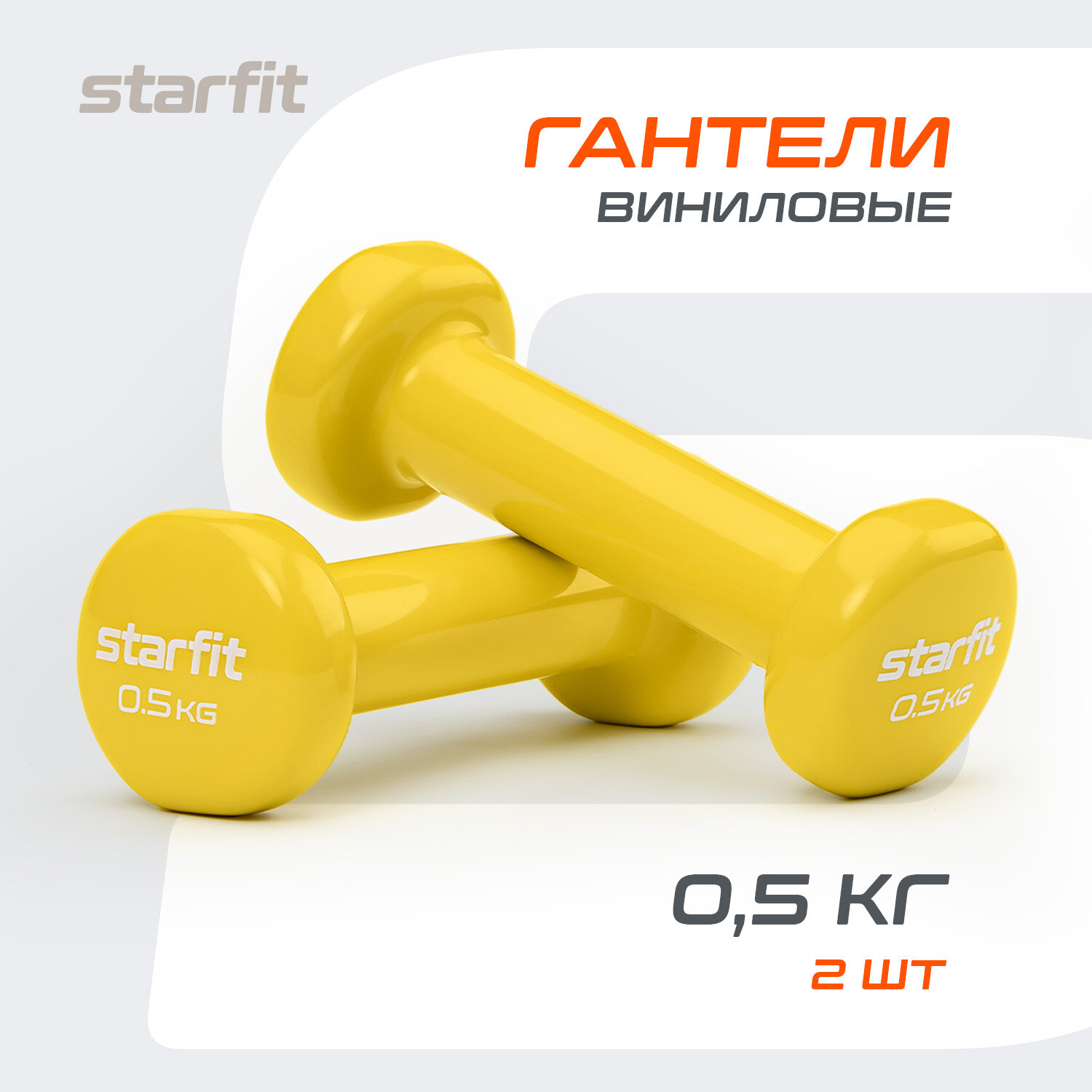 Гантели для фитнеса виниловые набор гантелей STARFIT DB-101 0,5 кг, желтый, 2 шт