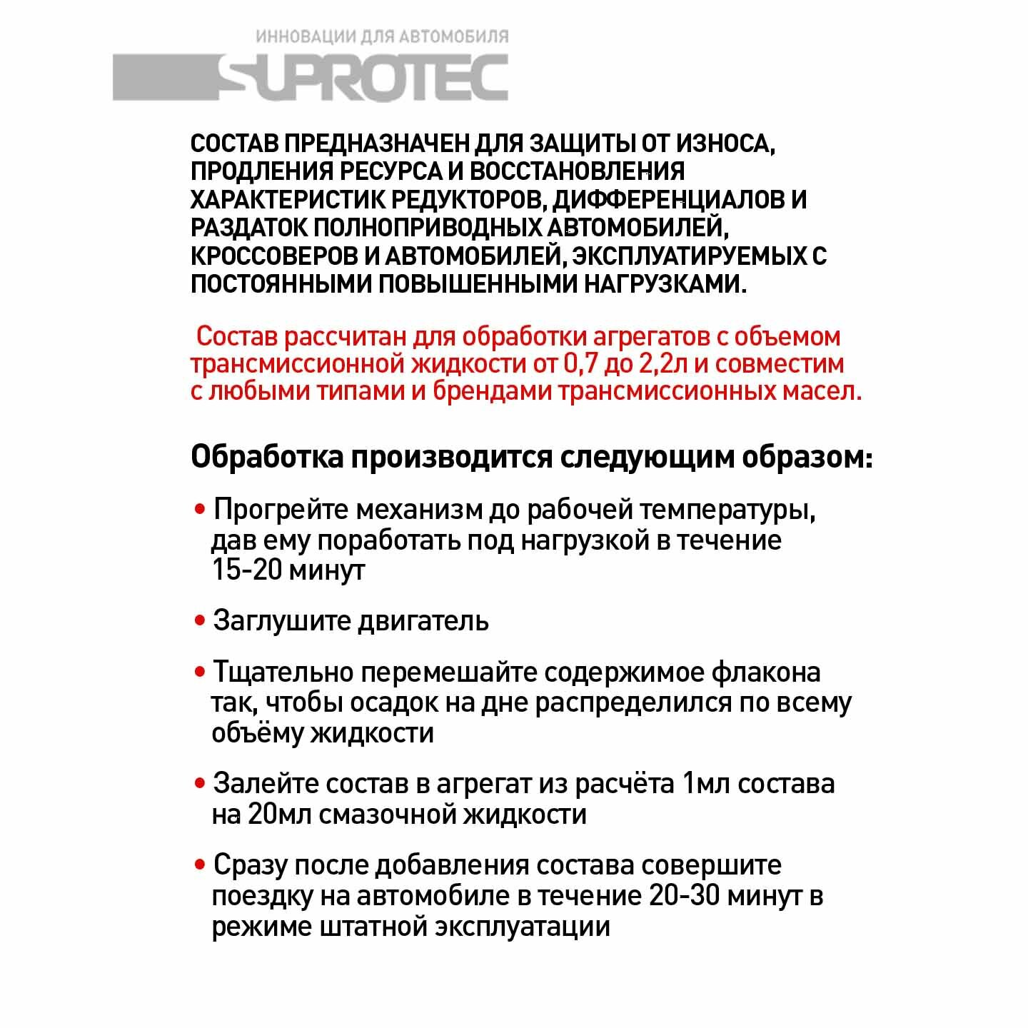 | Состав | базовое трансмиссионное масло и геомодификатор Супротек |