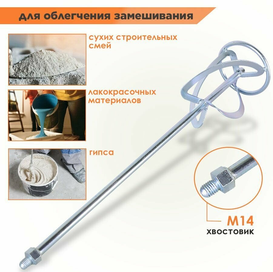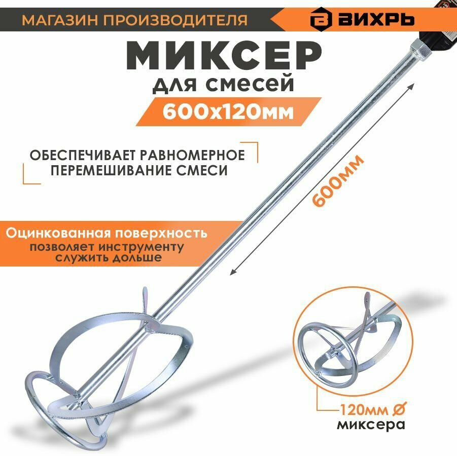 Купить Насадка-миксер оцинкованная вихрь 120х600 мм М14 для строительных смесей