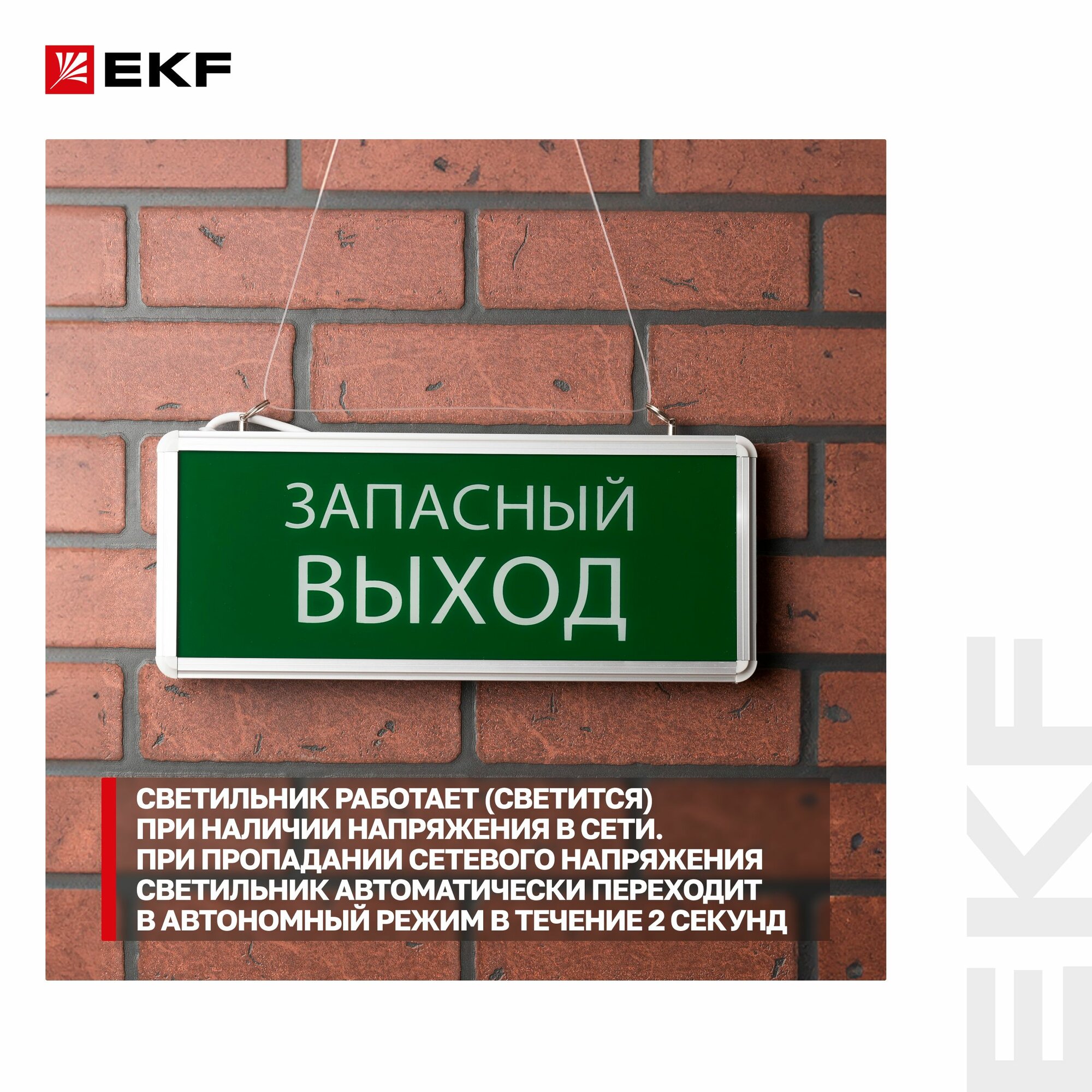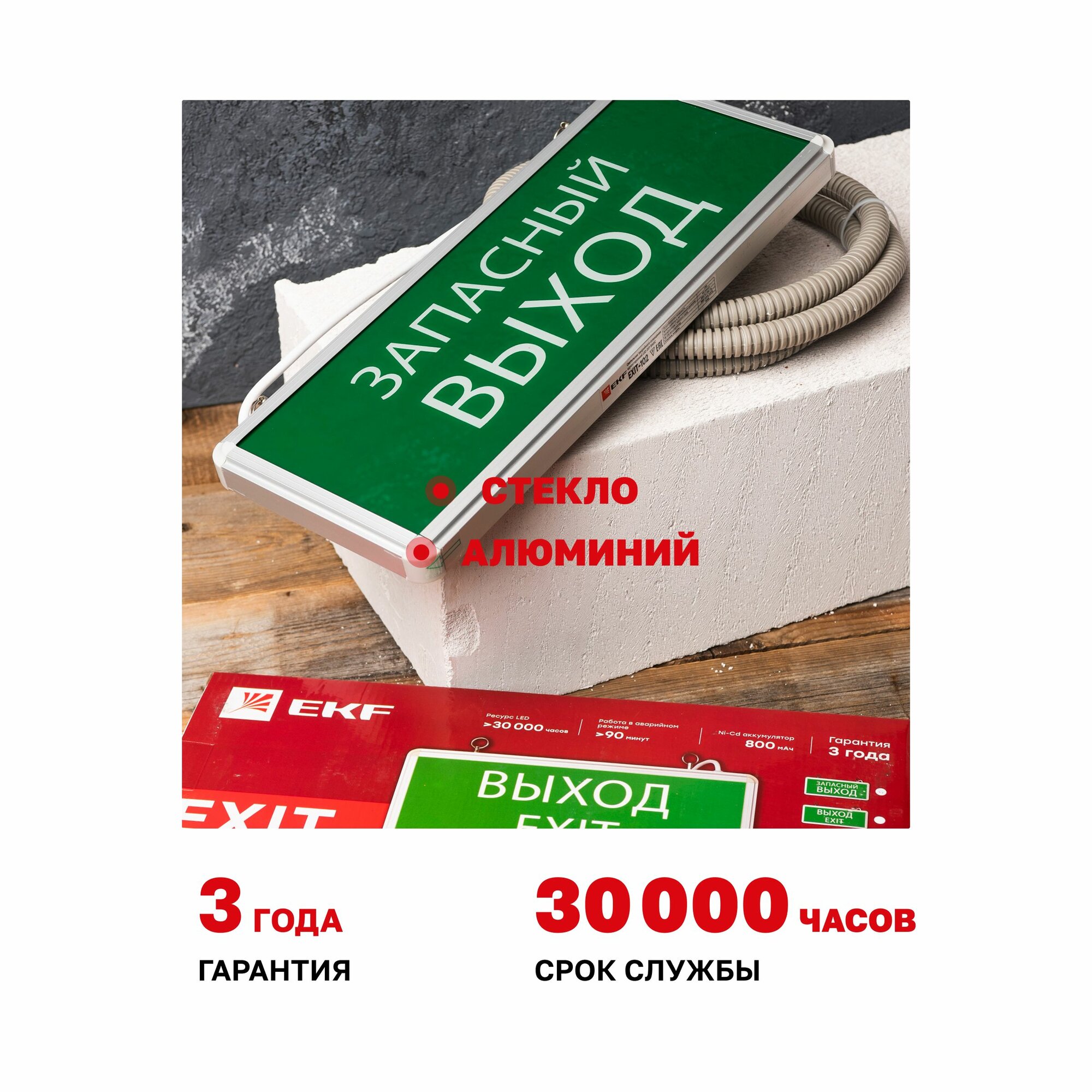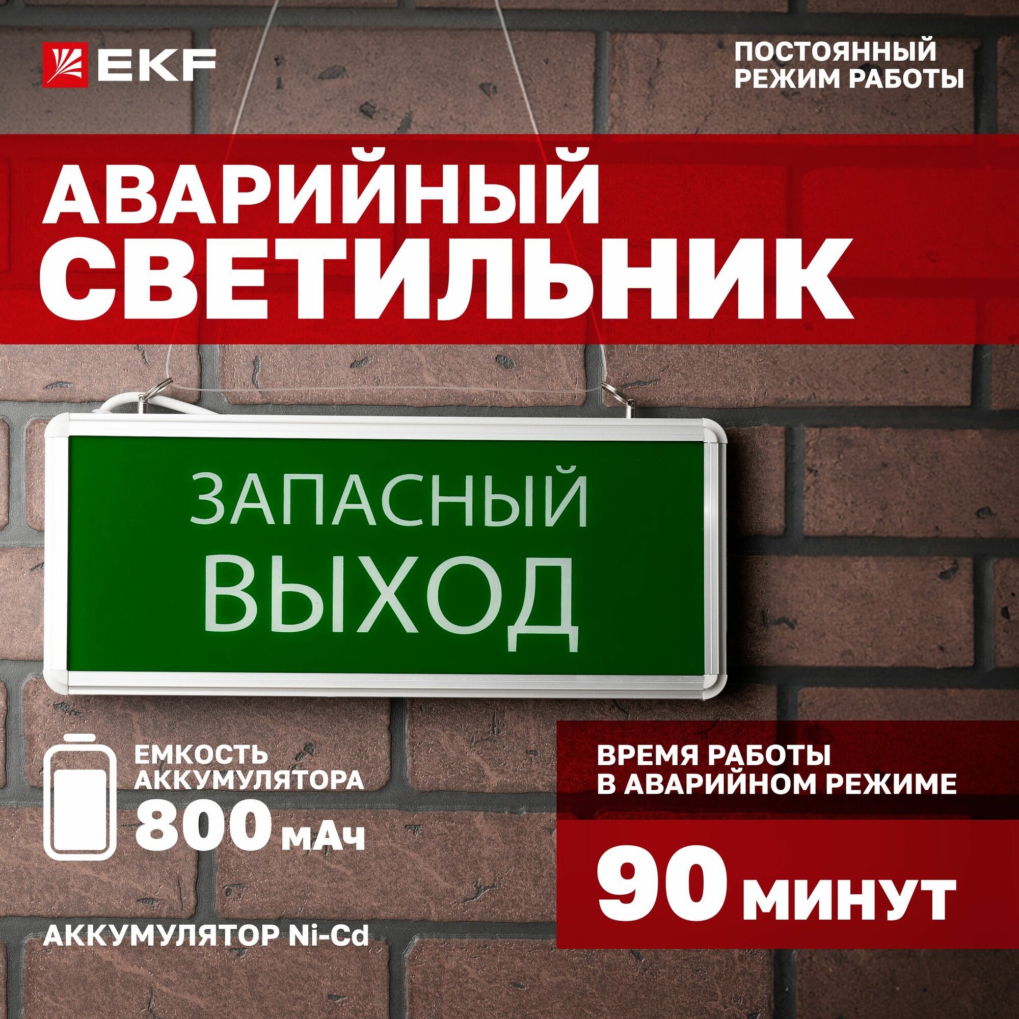 Аварийный светильник. Запасный выход с аккумулятором Ni-Cd 800мАч до 90 минут работы (аварийно-эвакуационного освещения), EXIT-102 односторонний постоянного действия LED EKF Basic интересное: