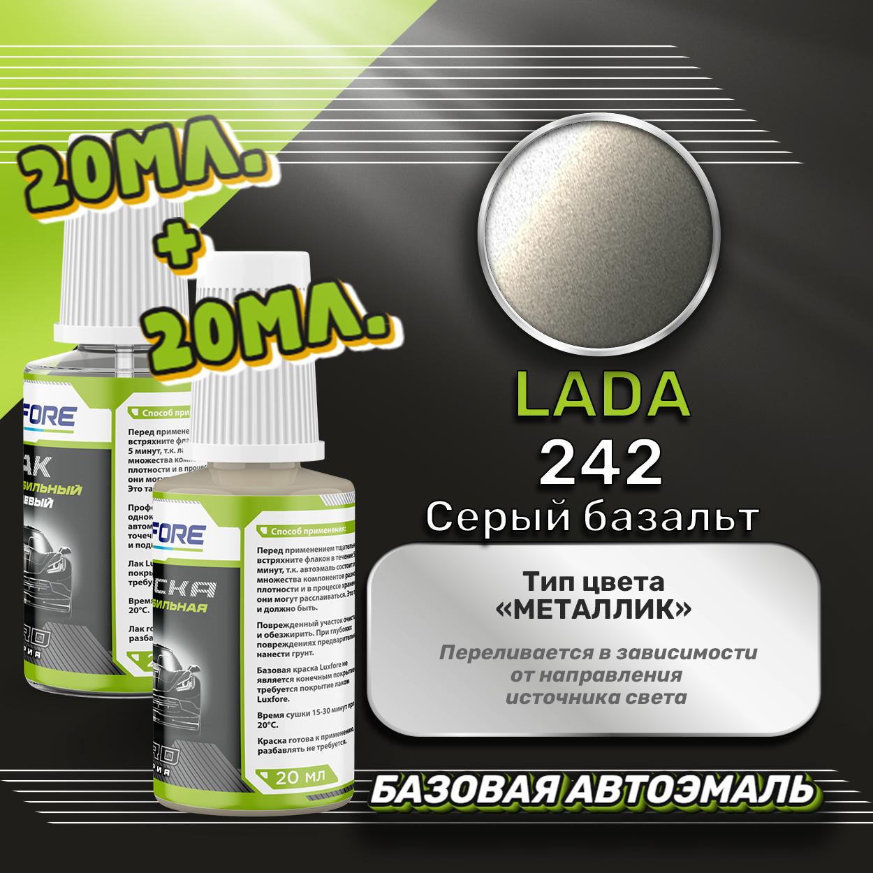 Купить Luxfore подкраска для царапин и сколов LADA 242 Серый базальт 20 мл + лак 20 мл комплект