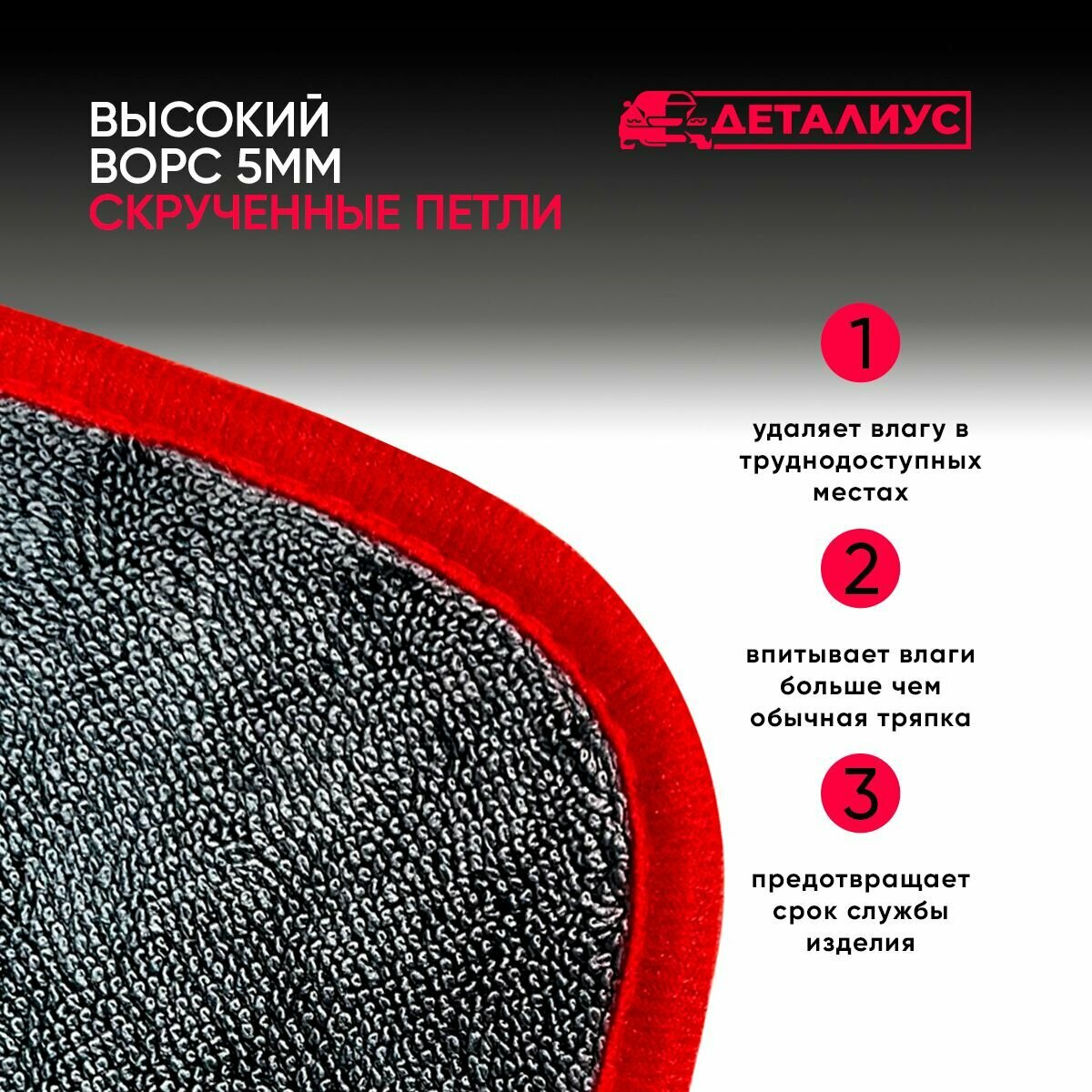 Автополотенце / Микрофибра для авто / Салфетка из микрофибры для авто "Деталиус"