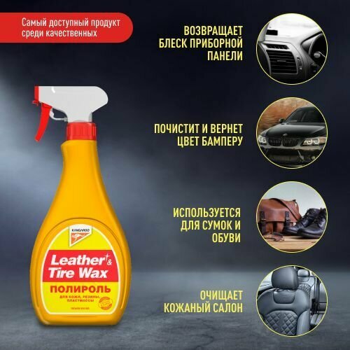 Полироль Kangaroo Leather & Tire Wax, глянцевый, антистатический эффект, 500мл