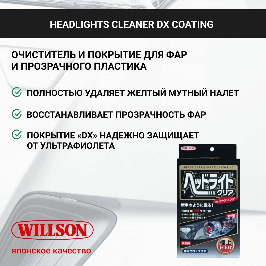 WILLSON HEADLIGHTS CLEANER DX COATING, 50+10мл. Очиститель-покрытие для фар интересное: