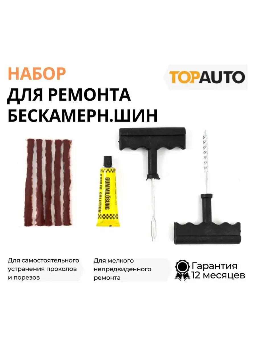 Ремкомплект для шин автомобиля шин бескамерных, TOP AUTO, клей 12 г, в блистере, 5486
