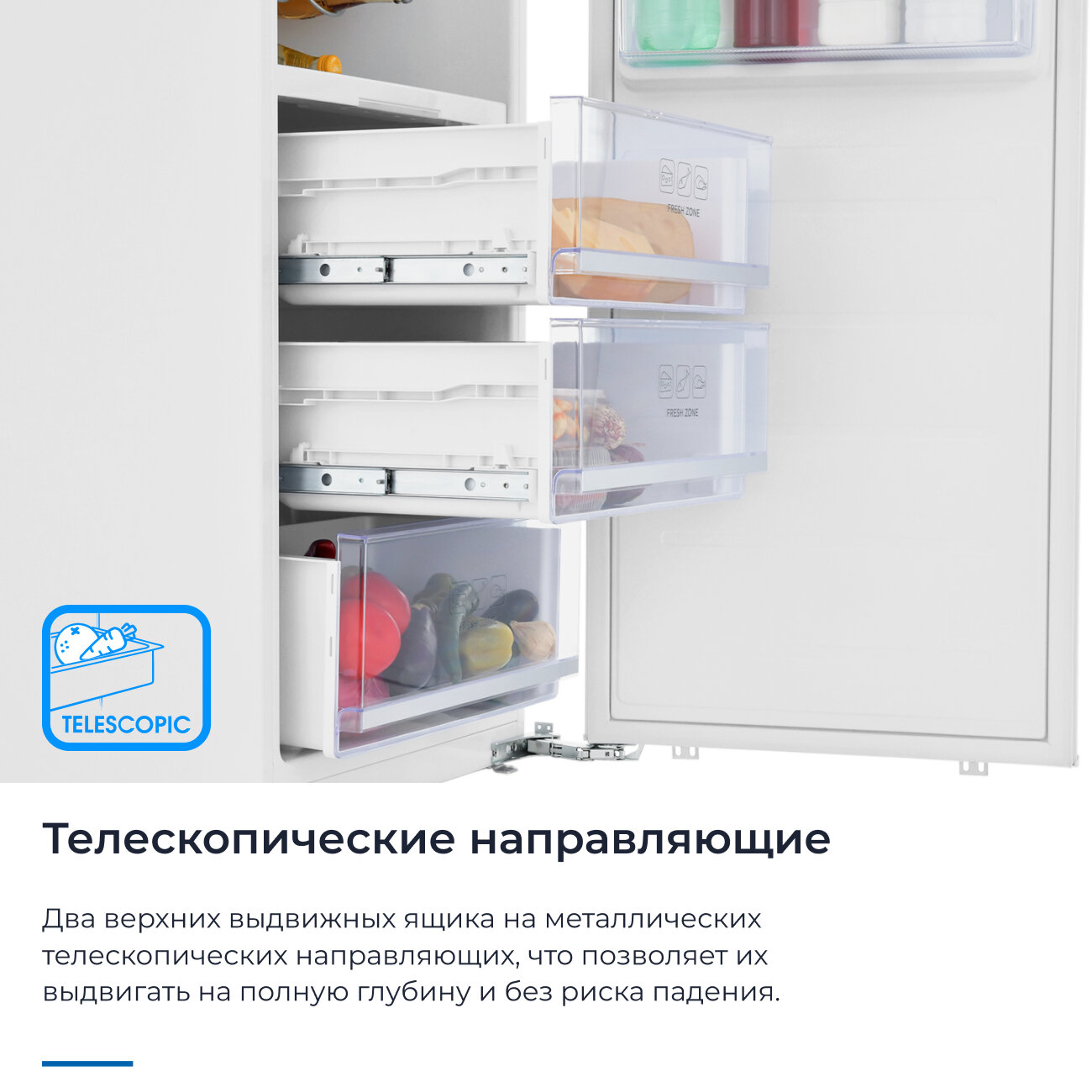 Купить Холодильник однокамерный встраиваемый ZUGEL ZRI1750NF, класс энергопотребления A+, 281 л, Full No Frost, режим Суперохлаждение, LED-подсветка AMBILIGHT, белый