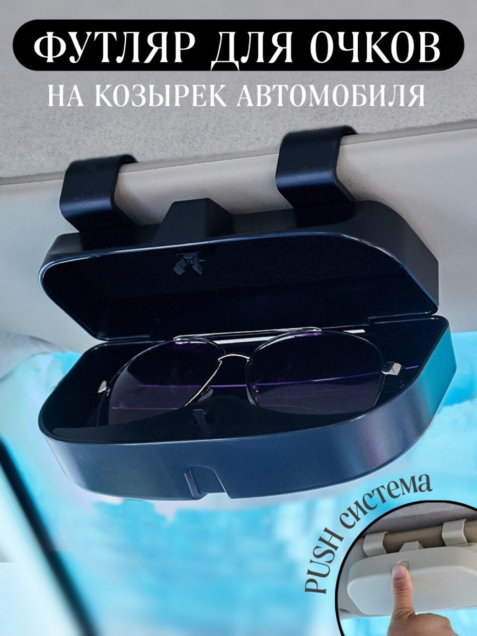 Футляр автомобильный Greatgoods, для очков, черный, из пластика интересное: