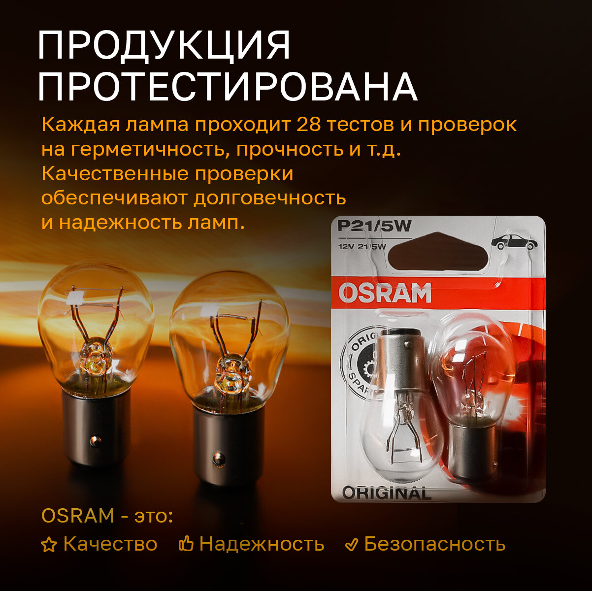 Osram P21/5W Лампа автомобильная Original 21/5W 3200K Для габаритных огней, стоп-сигнала 2 шт. интересное: