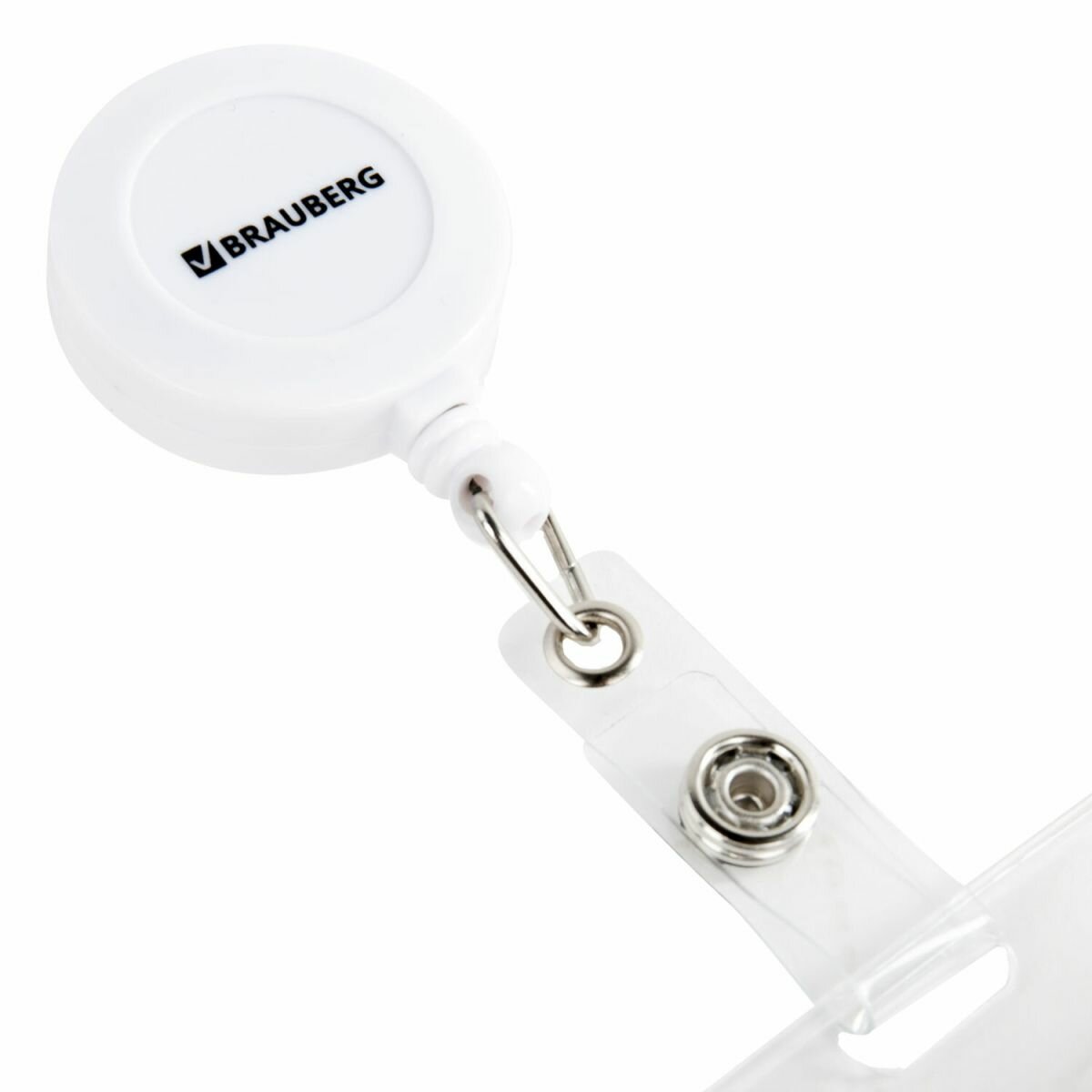 Бейдж горизонтальный (60х90 мм), с держателем-рулеткой 70 см, BRAUBERG, 235709