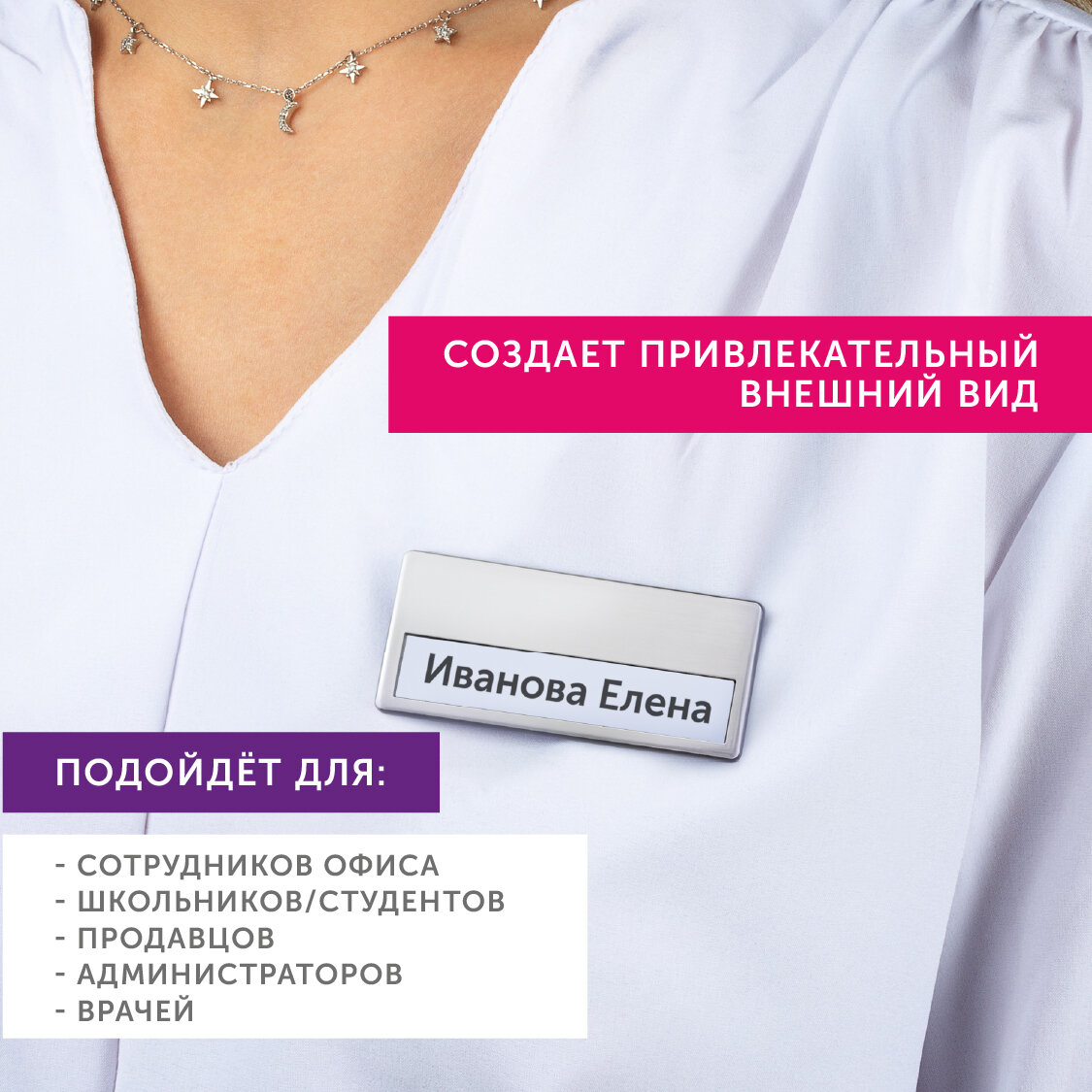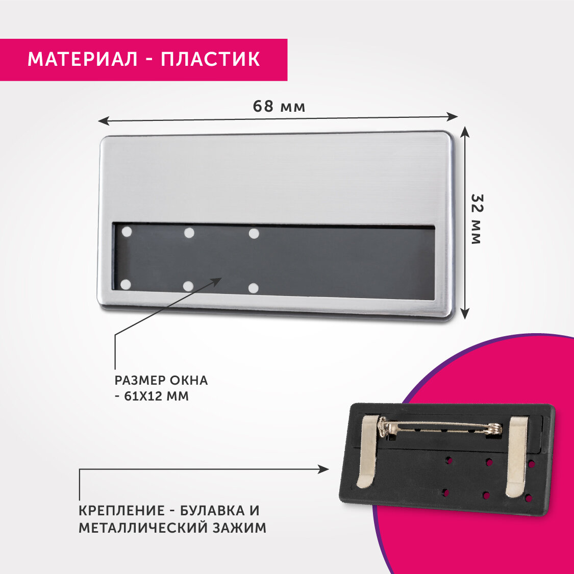 Бейдж горизонтальный с окошком FastMarket, 68х32мм, пластик, серебристый интересное: