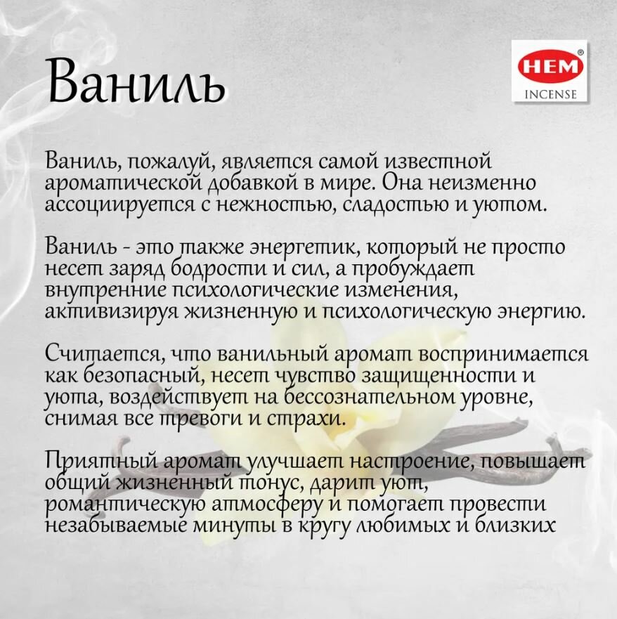 Благовония HEM "Vanilla" (Ваниль), 20 палочек интересное: