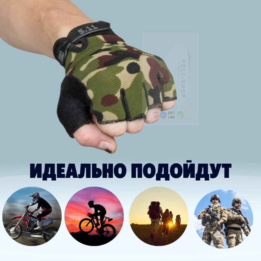 Перчатки тактические для рыбалки и охоты 5.11/ велоперчатки / мотоперчатки зимние без пальцев камуфляжные интересное: