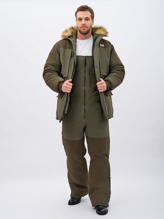 Костюм зимний для охоты и рыбалки KATRAN север -35°С (исландия, хаки) полукомбинезон, Размер: 48-50 Рост: 170-176
