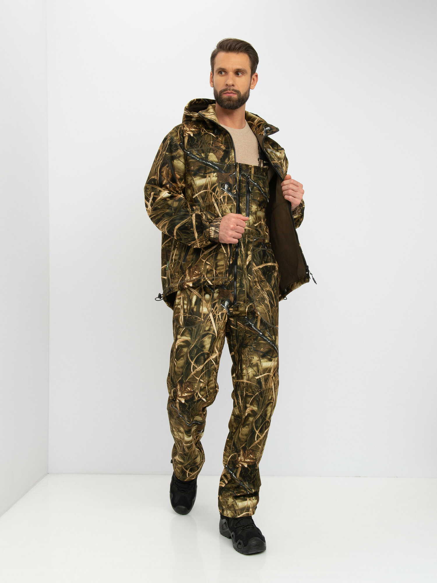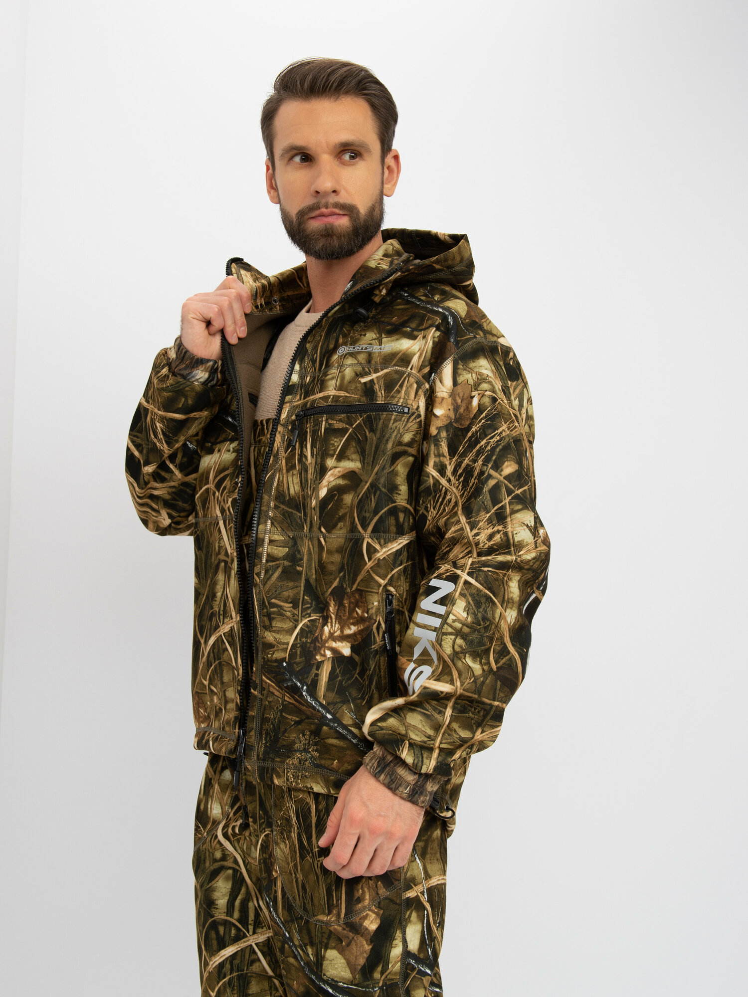 Костюм тактический мужской демисезонный на флисе Huntsman Никс Люкс, ткань Alova Windblock, цвет камыш (р.44-46/182-188)