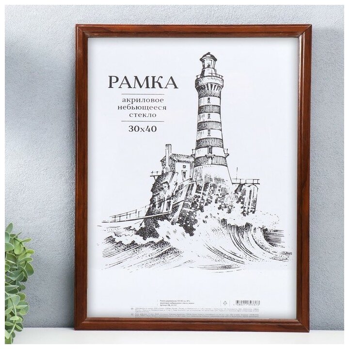 Рамка деревянная 30*40см, OfficeSpace, №1, акриловое небьющееся стекло, янтарь