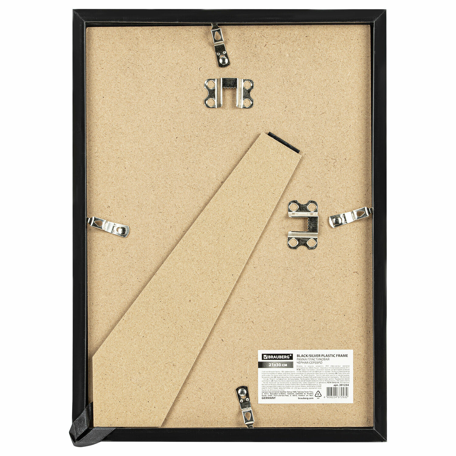 Купить Рамка 21х30 см небьющаяся, багет 14,6 мм, пластик, BRAUBERG "Original Line", черная/серебро, 391234, в комплекте 1шт