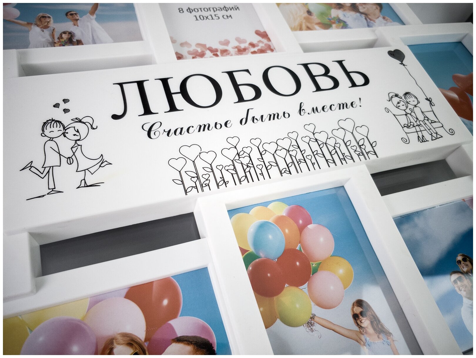 Мультирамка "LOVE" коллаж на 8 фото 10х15 см, белый