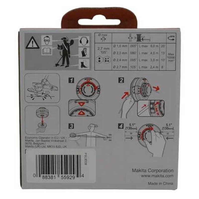 Триммерная головка Makita головка полуавтоматическая M8x1.25LH, диаметр лески 2 мм быстрая намотка