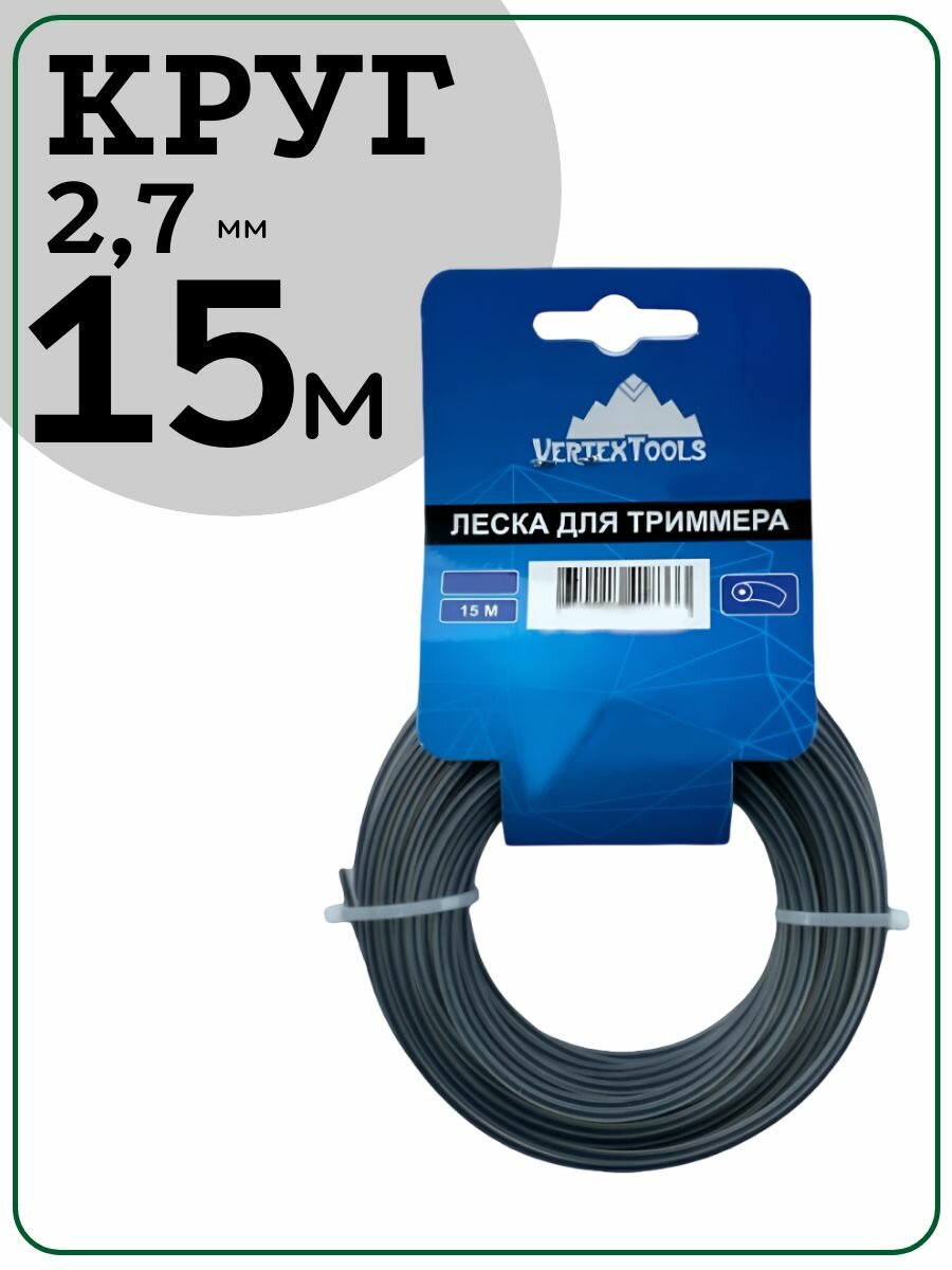 Купить Леска для триммера, 2,7мм, круглая с сердечником 15м, VERTEXTOOLS