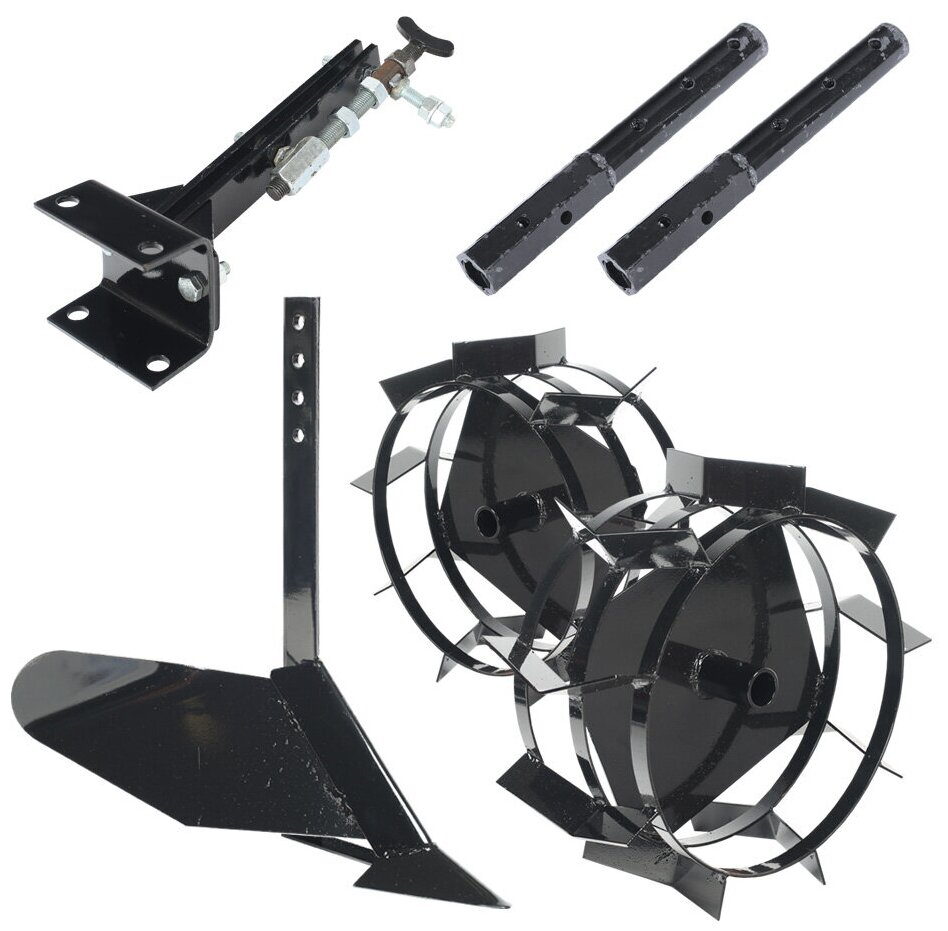 | Комплектация | Грунтозацепы: 2 шт. Окучник для грядок Удлинители колесных осей: 2 шт. Сцепка Упаковка |