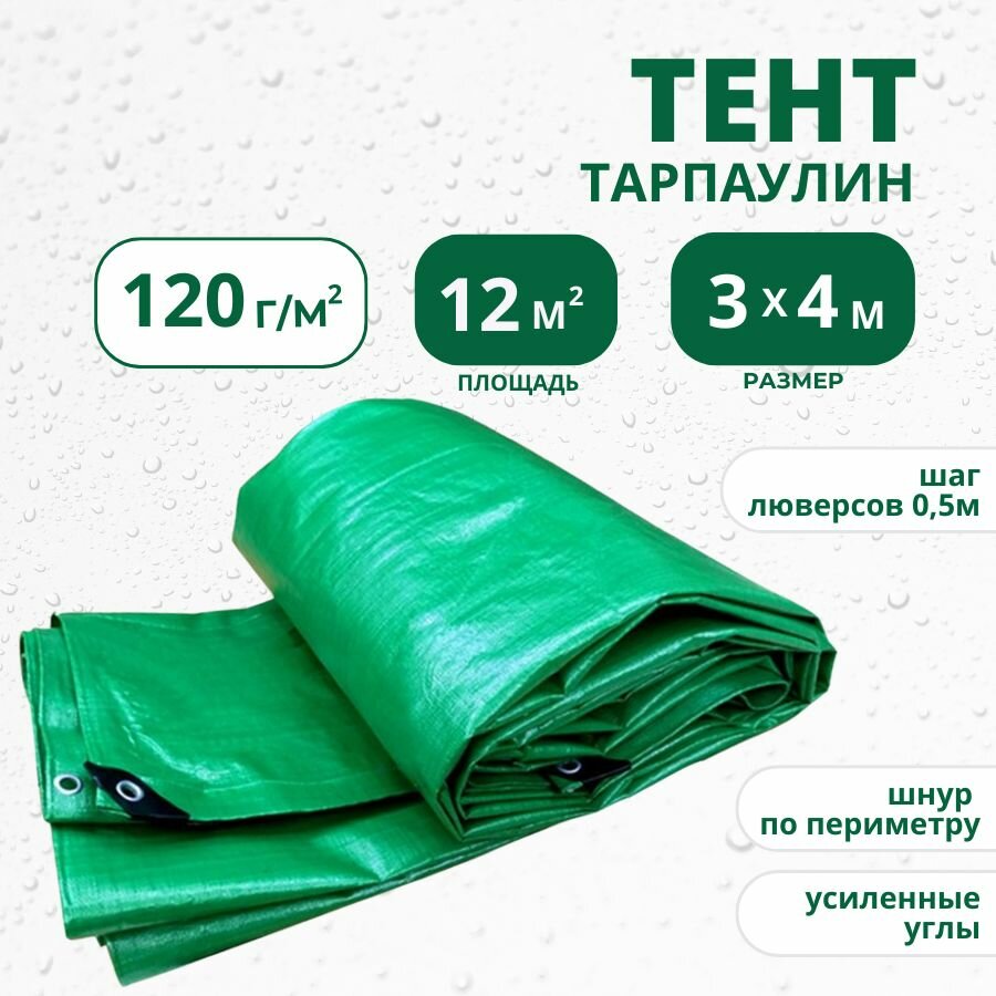 Купить Тент Тарпикс укрывной 3х4м 120 г/м2 с люверсами, баннер, навес, полог туристический, строительный, универсальный
