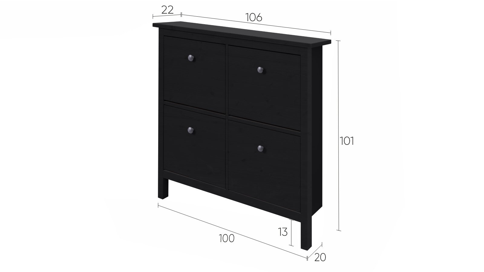 Купить Обувница в прихожую Икеа / Кымор, 106х101х22 см, черный, массив сосны