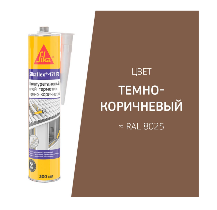 Полиуретановый эластичный универсальный клей-герметик Sikaflex-171 FC+, 300 мл, цвет темно-коричневый