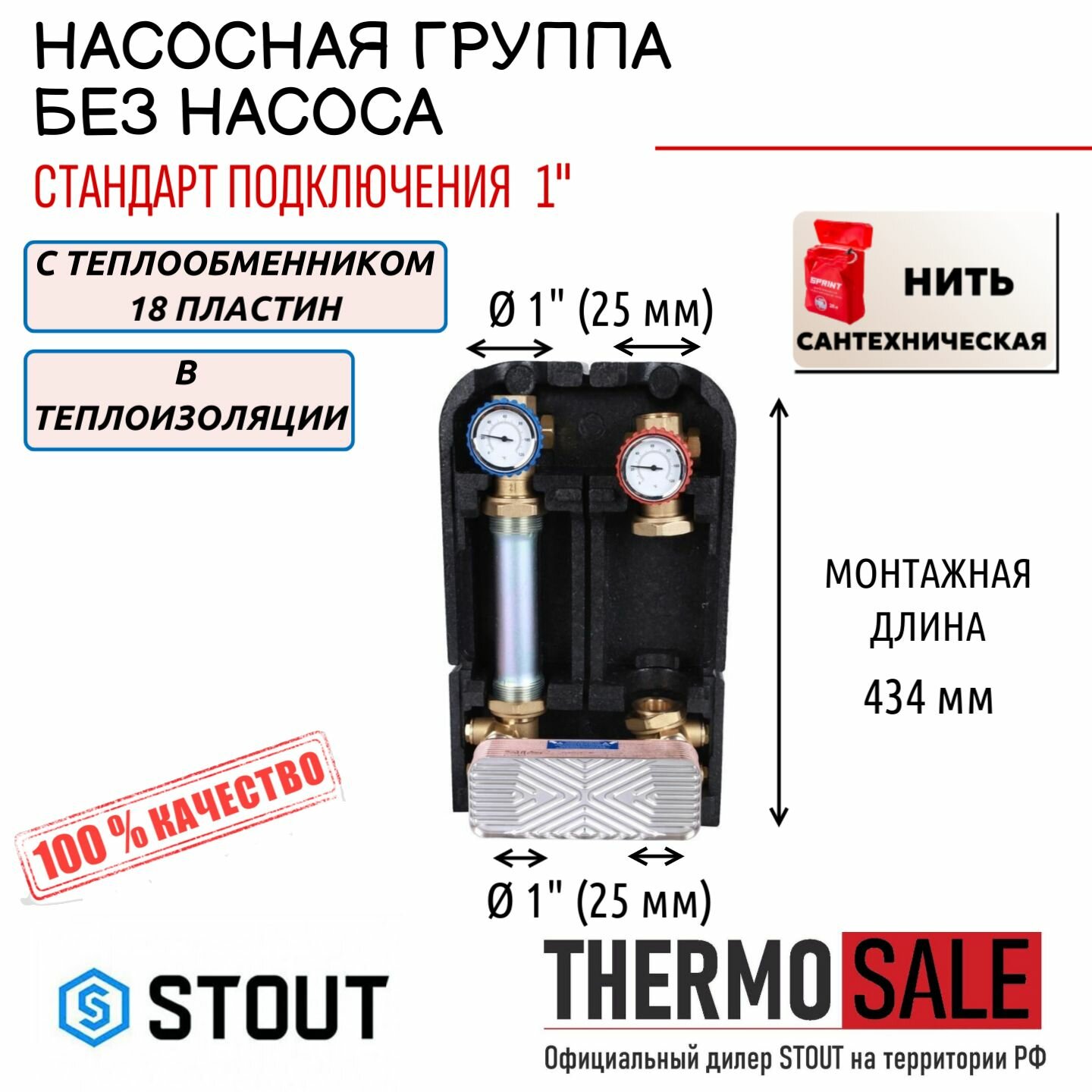 Насосная группа с теплообменником 18 пластин, без насоса в теплоизоляции STOUT Сантехническая нить