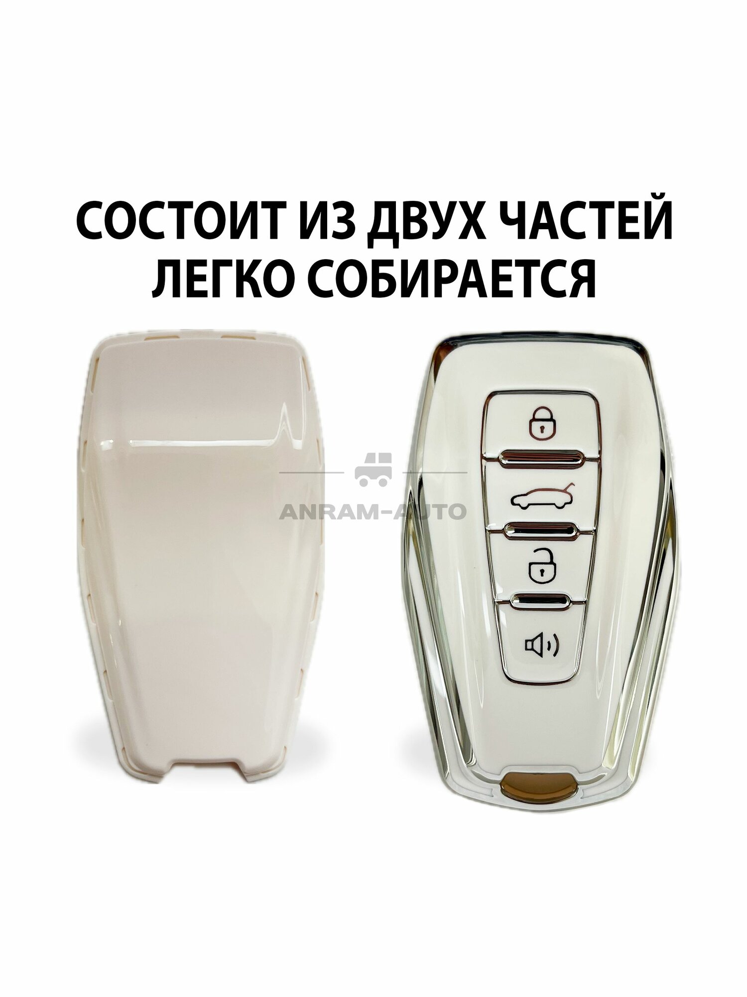 Чехол для автомобильного смарт ключа GEELY Coolray, Geometry С, Geometry A, Monjaro (белый) интересное: