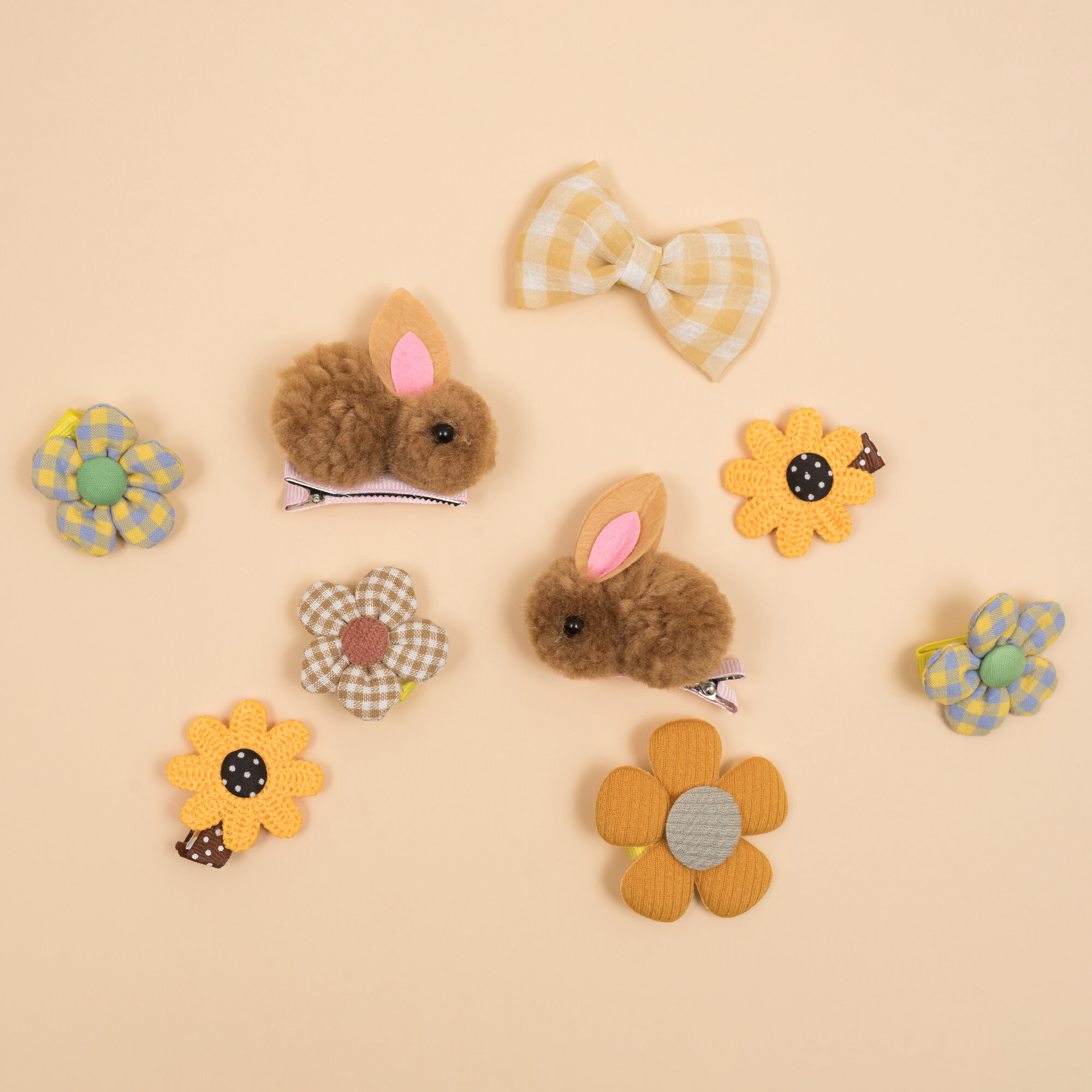 Набор детских заколок Croco Gifts, зажимы из ткани и искусственного меха, 9 шт., желтый, оранжевый, бежевый