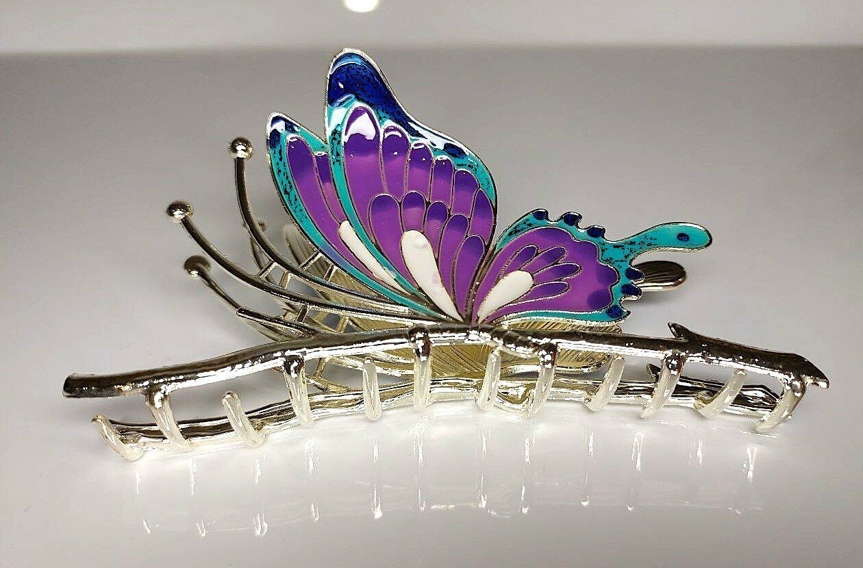Заколка-краб "Бабочка" со стразами. Серебро. Усиленная.