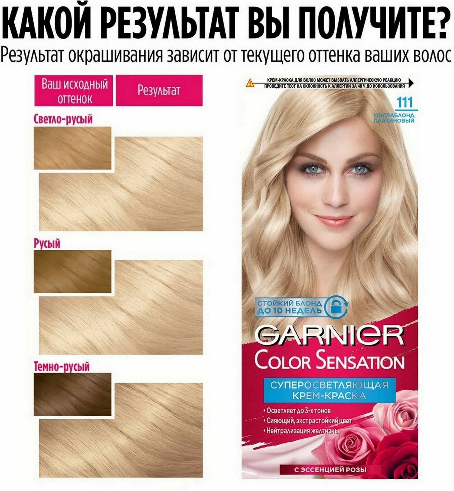 Ниже Вы можете прочитать отзывы на GARNIER Color Sensation Платиновые блонды стойкая крем-краска, 111, Ультра блонд платиновый, 110 мл, ознакомится с подробными характеристиками, посмотреть интересные обзоры и фотографии на GARNIER Color Sensation Платиновые блонды стойкая крем-краска, 111, Ультра блонд платиновый, 110 мл.