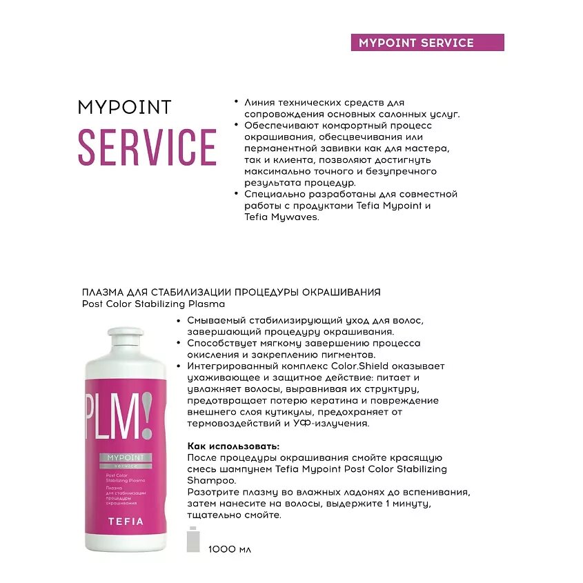 Tefia, Плазма для стабилизации процедуры окрашивания MYPOINT Service, 1000 мл