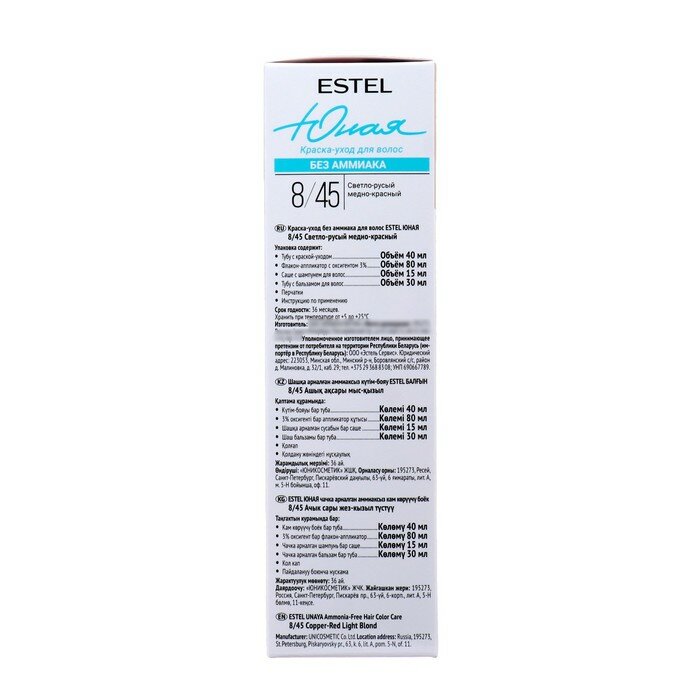 СохранитьКраска-уход юная для окрашивания волос ESTEL 8.45 светло-русый медно-красный 40+80+45 мл интересное:
