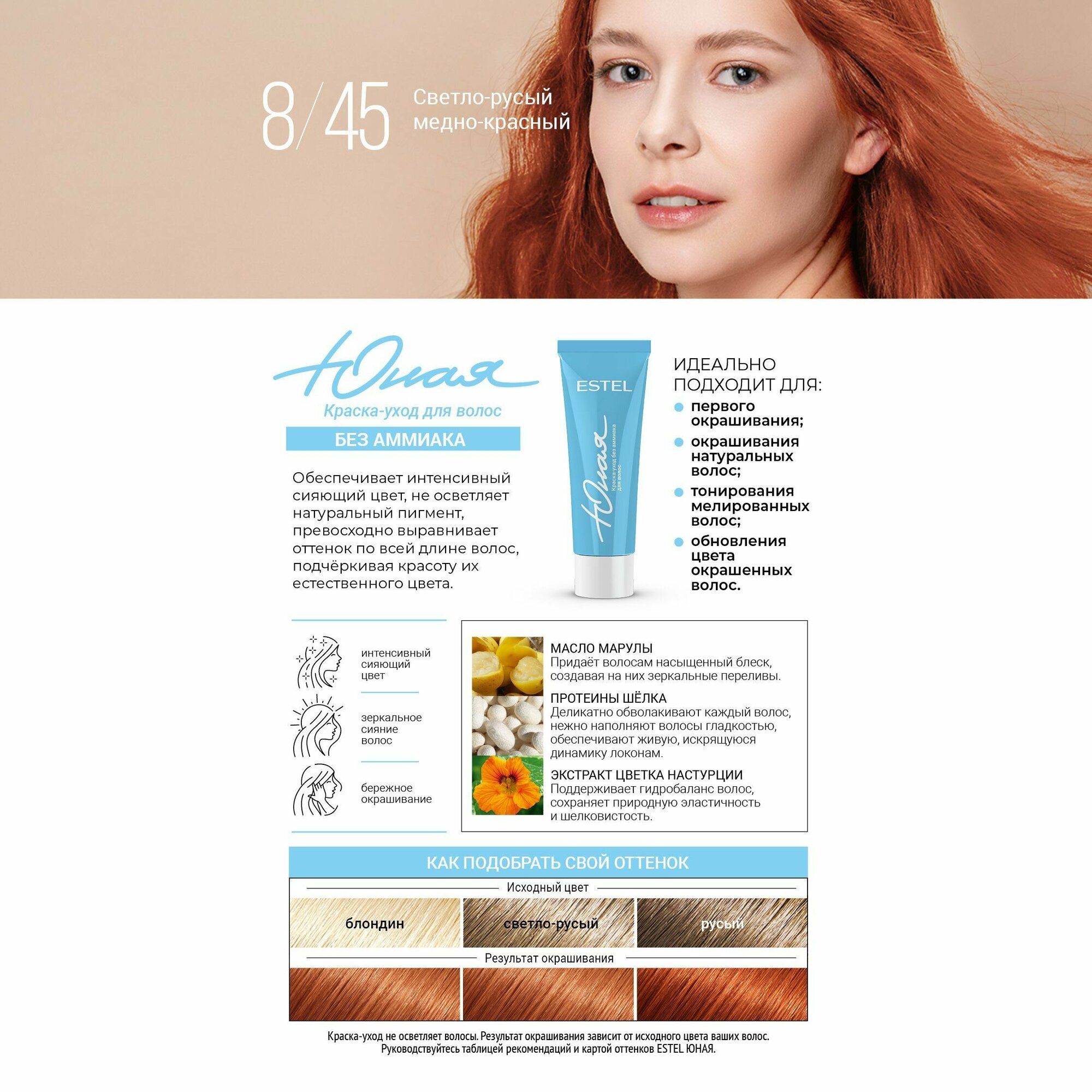 ESTEL Юная Краска-уход без аммиака для волос, 8/45 светло-русый медно-красный