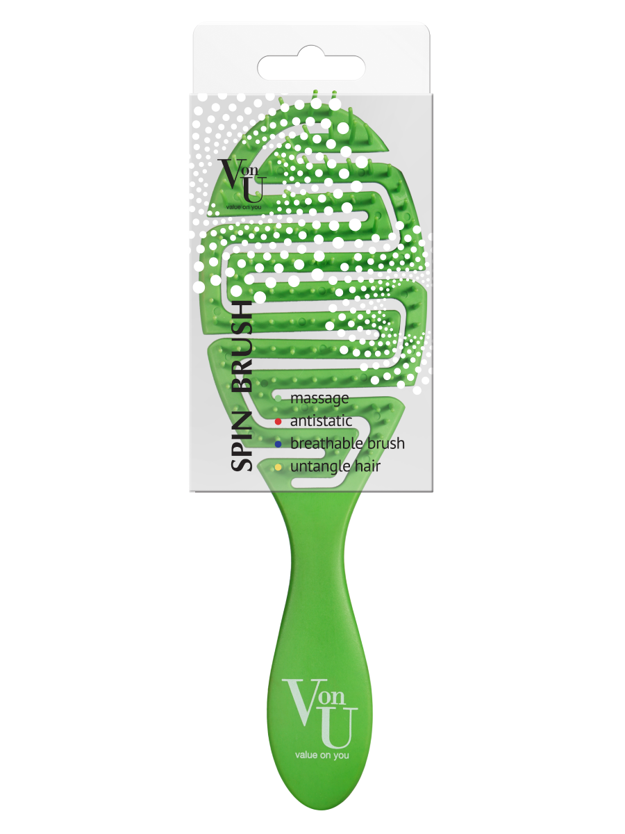 Расческа для волос Von-u Spin Brush Green, зеленая интересное: