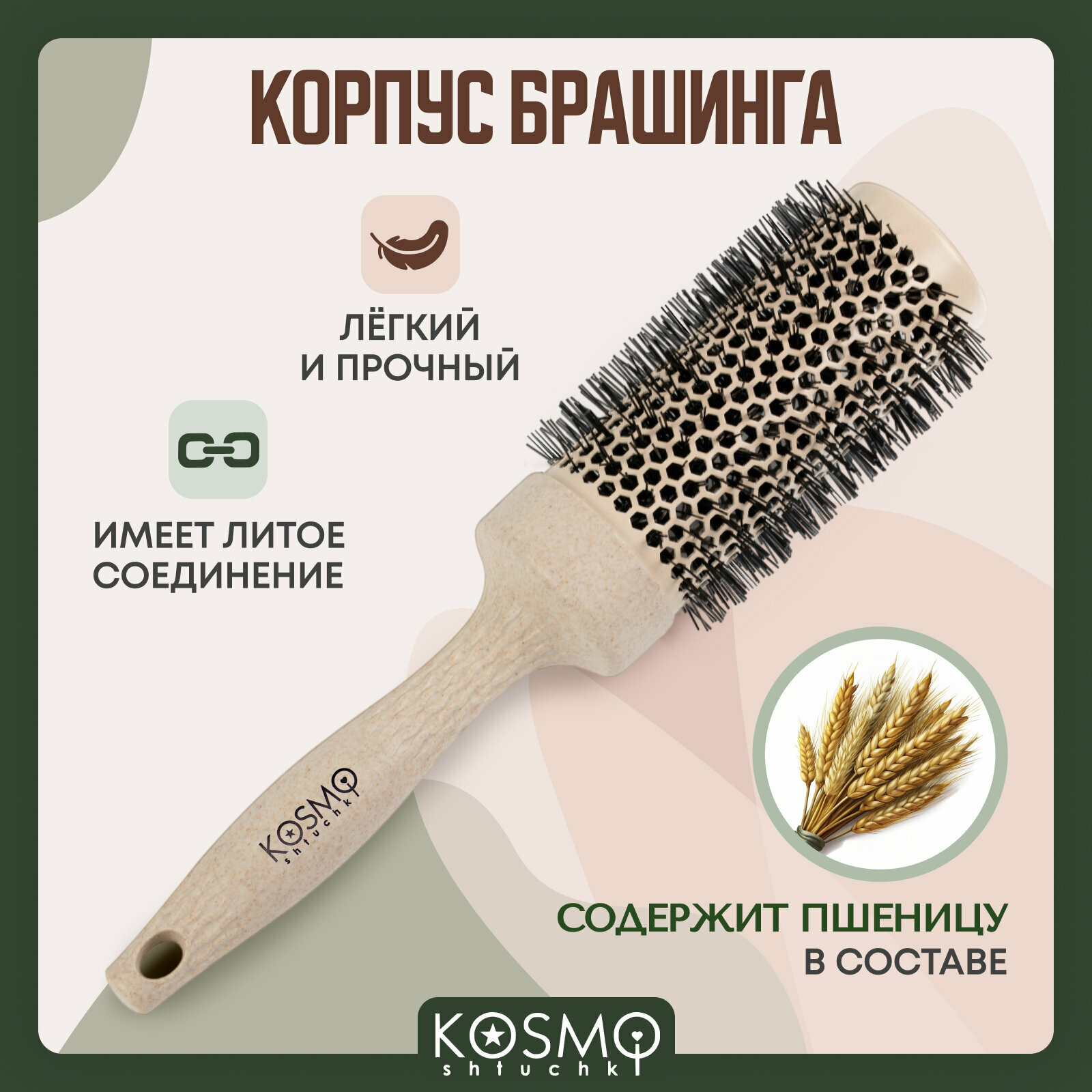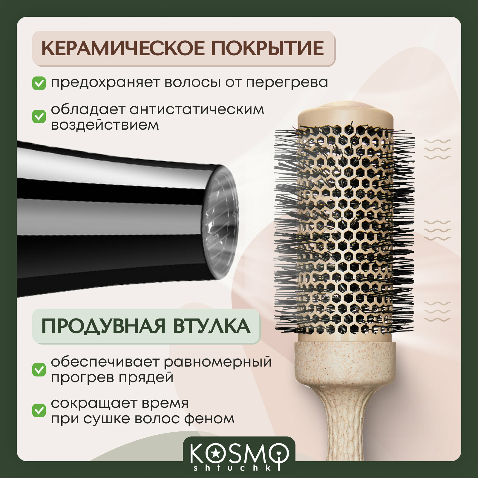 KosmoShtuchki Термобрашинг с керамическим покрытием 44 мм БИО (бежевый), брашинг для укладки волос интересное: