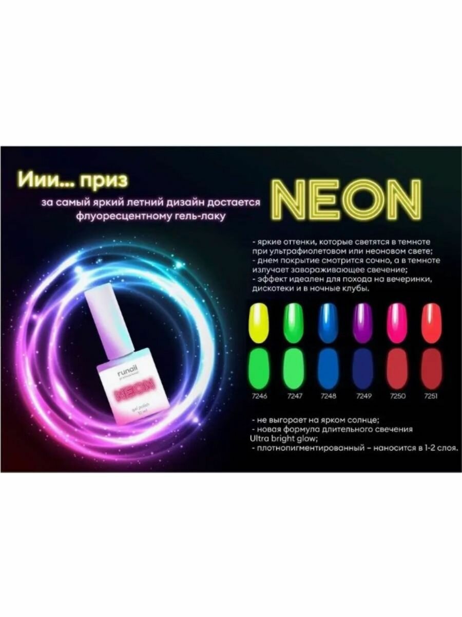 RUNAIL, NEON, Гель-лак неоновый флуоресцентный №7250, 10 мл