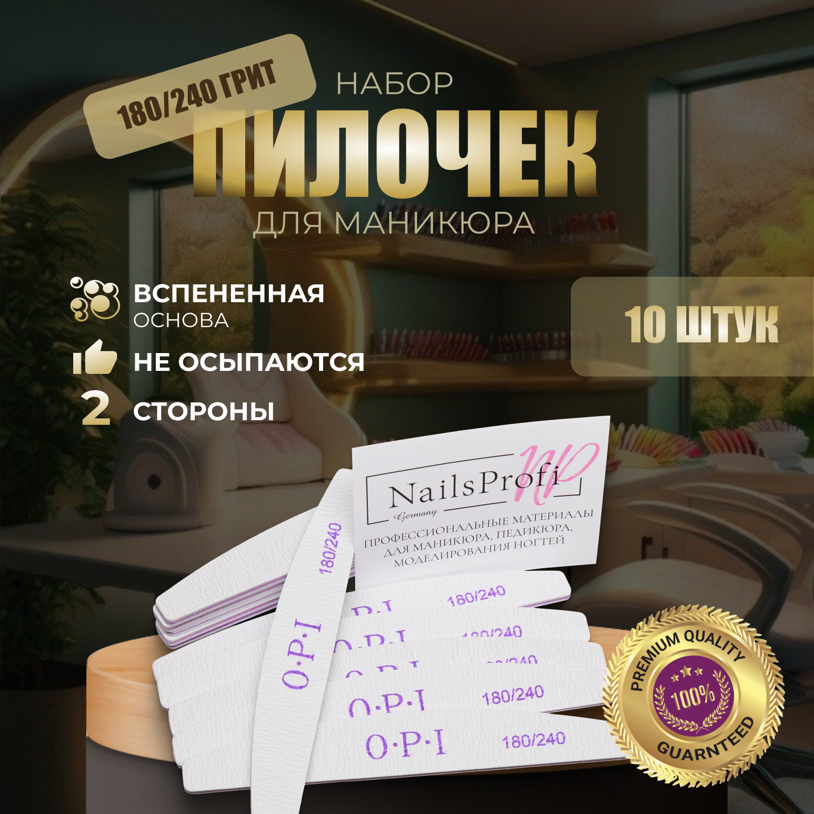 СохранитьNailsProfi, Пилки для ногтей OPI овал лодочка полумесяц 180/240, 10 шт, набор, пилки, пилочки для маникюра интересное: