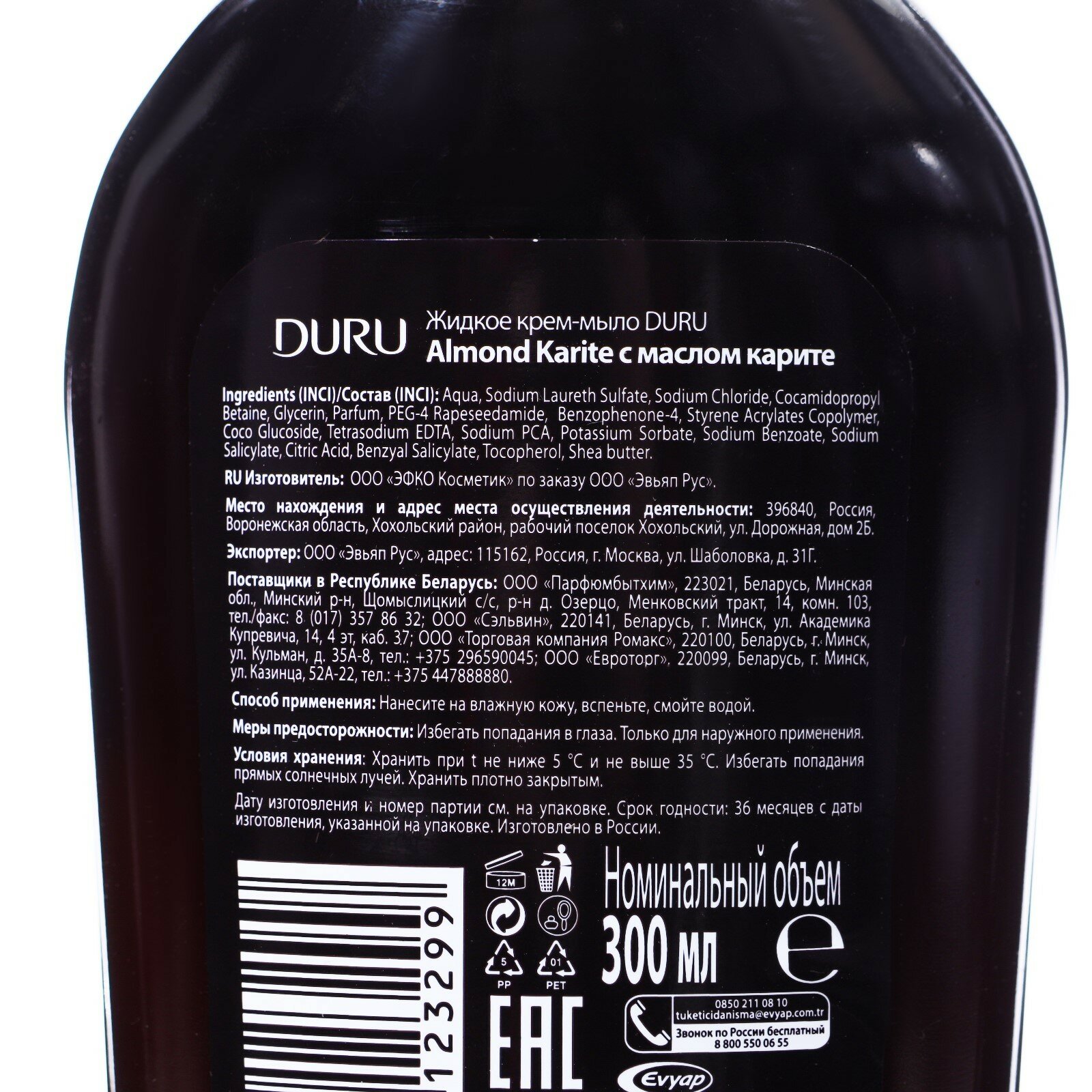 Купить Жидое крем-мыло DURU Almond Karite с маслом карите, 300 мл