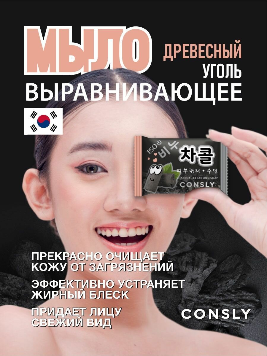 Купить Выравнивающее мыло Consly с древесным углём, 150 г