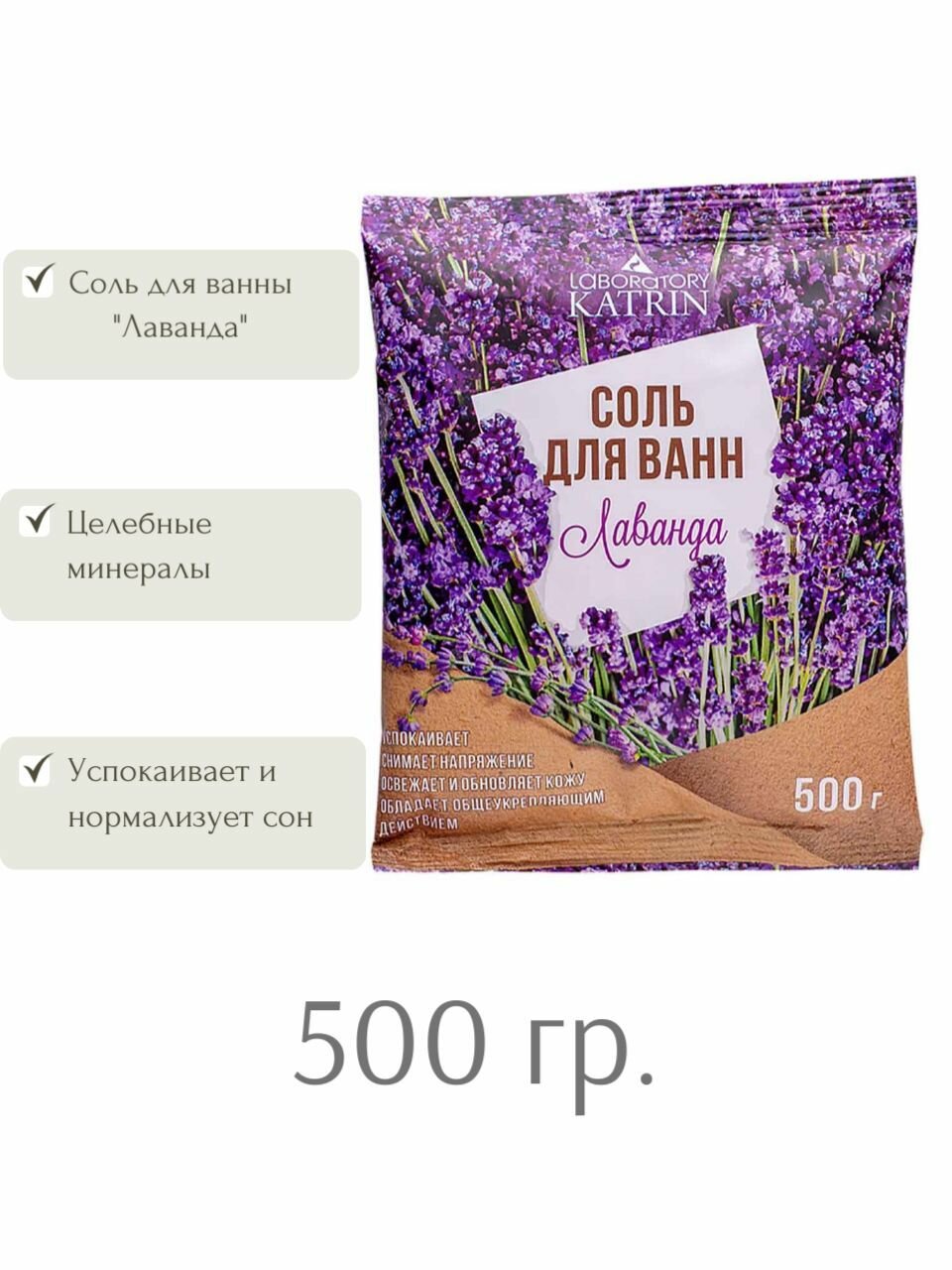 Соль для ванн Laboratory Katrin "Лаванда", в пакете, 500 г